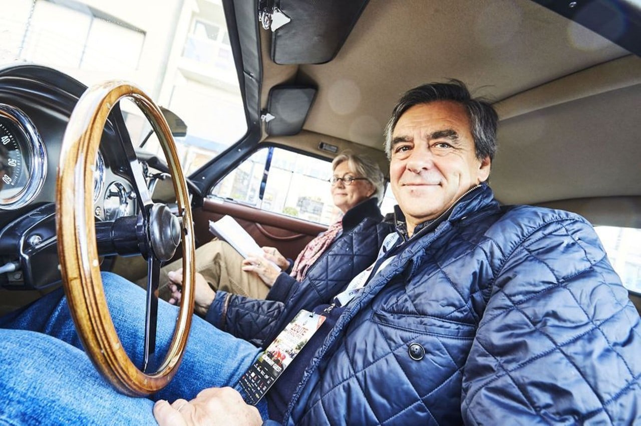 C’était snob, les “ceusses” qui possèdent d’un coté (ci-dessus et ci-dessous, François et Pénélope Fillon dans leur Aston-Martin de plus d’un million d’euros)…, les “ploucs” qui viennent regarder de l’autre…, il y a un coté pathétique dans ces manifestations qui sont exclusivement commerciales sous des dehors snobinards de faux-culs en dérives et dérapages plus ou moins incontrôlés…, beaucoup d’anciennes belles femelles y exhibent une partie de leurs seins souvent siliconés… et leurs rotules…, pivots d’articulation de leurs gambettes ou jambons (c’est selon)… ou il y a assez bien de vergetures…