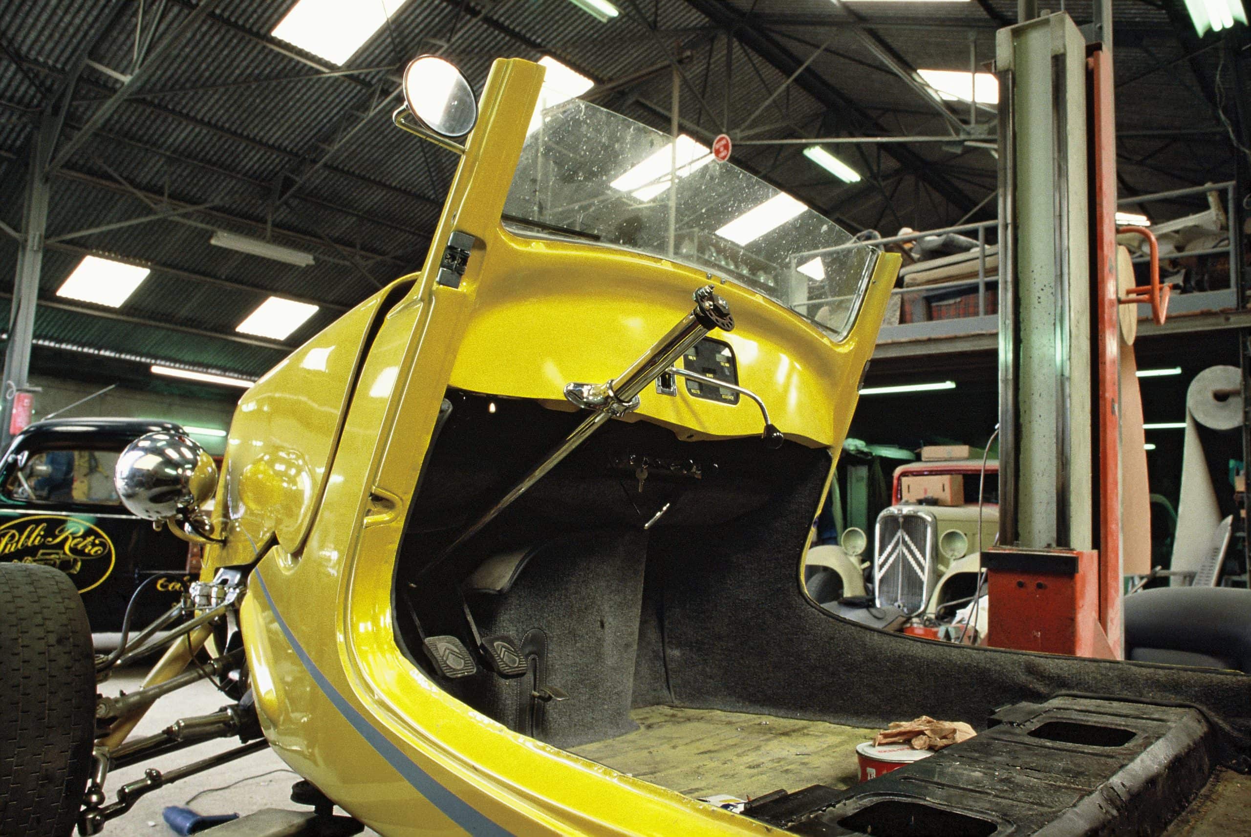 Dans ce mic-mac, la Traction Avant Citröen Hi-Boy, tout comme le C’Cab et le FordB’32, simples et cleans, peinture unie, intérieurs en cuir ou en tissus gris…, faisaient tâche…, comme un meuble Design au milieu d’une brocante !