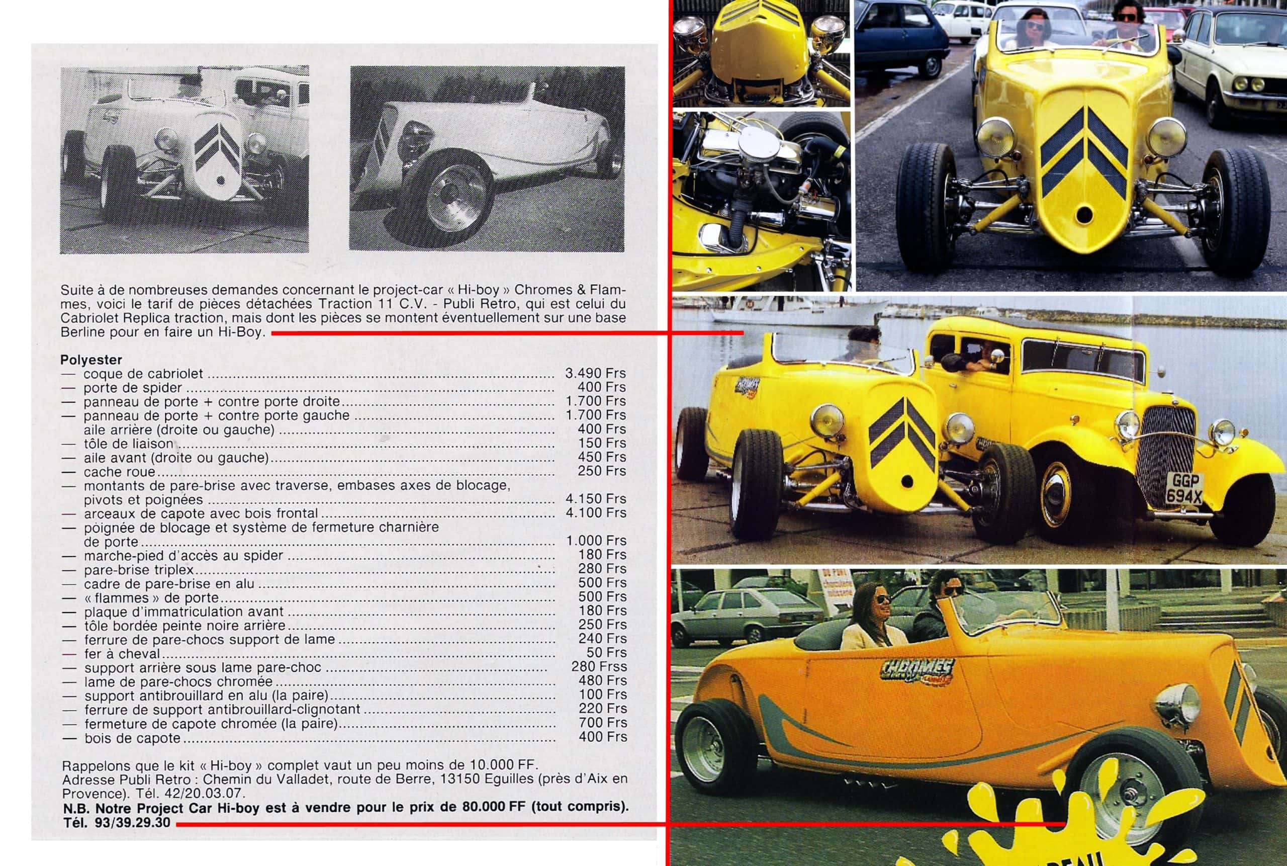 Un concours avait été organisé dans les colonnes de mes magazines afin de promouvoir le Cutomizing et le Hot-Rodding en France, ce concours devait avoir sa consécration à Arcachon au solde d’une année de participation de C&F à quasi toutes les concentrations de Customs et Rods dans l’Hexagone…, le premier prix étant un kit complet de Traction Avant Hi-Boy…