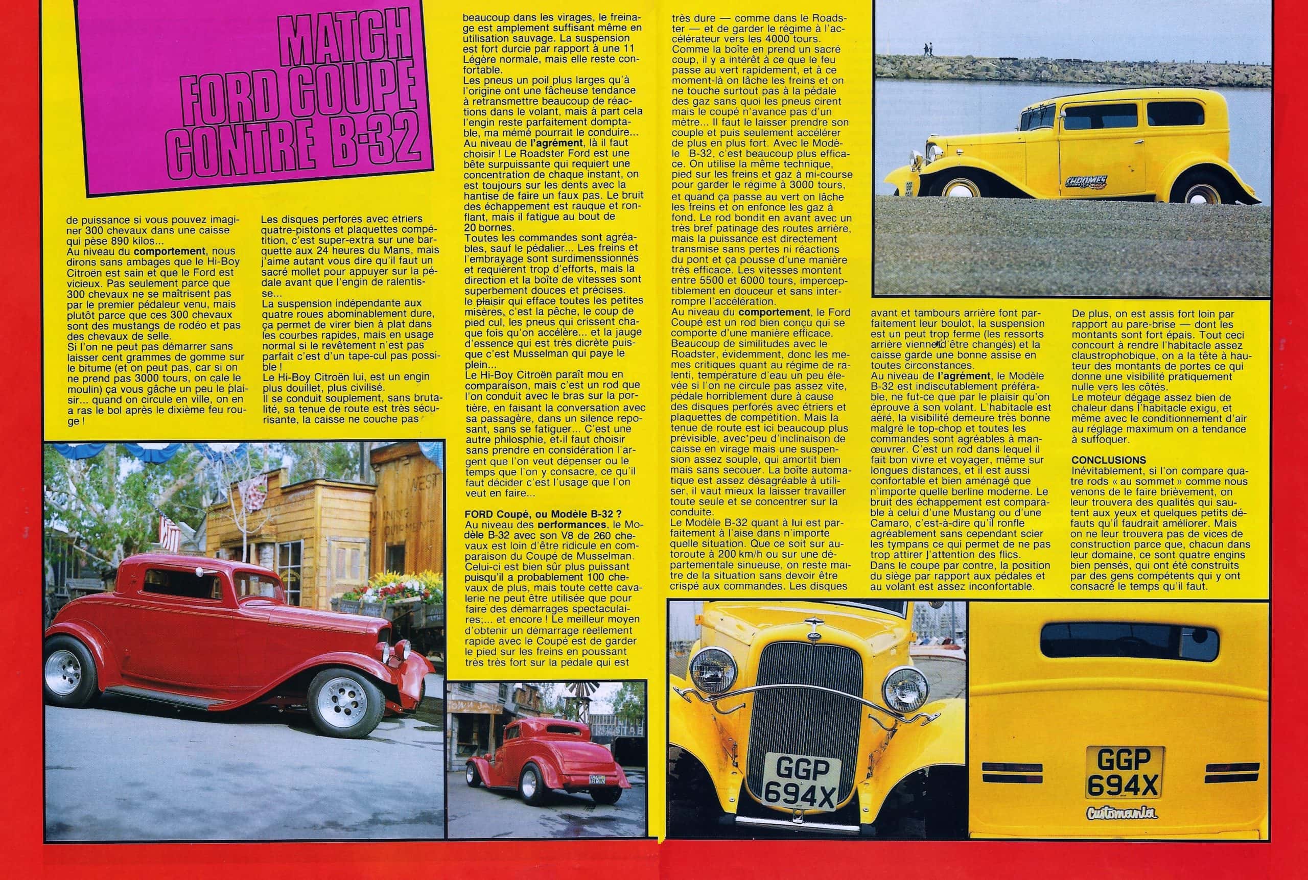 Pourtant la ‘flotte‘ présentée par C&F pour promouvoir le Customizing et le Hot-Rodding en France était constituée de voitures au TOP de l’époque : L’Oldsmobile ’48, un Hot-Rod B’32 5 windows, le C’Cab Novel’T, la Traction Avant Hi-boy Citröen, le Trike V-12 et une Mustang Mach One Street-Machine…