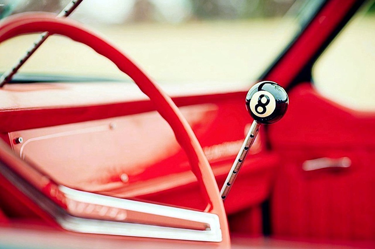Alexeï Koptev – La beauté de la voiture vient de quelques pièces soigneusement sélectionnées. Il a fallu se débarrasser de certaines, typiques de la Volga. La calandre par exemple était en très mauvais état. Les feux arrière ont été montés plus profondément. Pour cela, il a fallu modifier la forme des ailes arrière. L’arrière de la voiture a demandé beaucoup de travail mais désormais, à faible vitesse, des passagers peuvent s’y assoir pour profiter du vent… A l’intérieur aussi, beaucoup de travail a été fait, rien ne devait distraire le conducteur qui doit profiter du voyage, de la liberté et du vent de face. Tous les commutateurs ont été supprimés du tableau de bord, de même que l’autoradio et la boîte à gants. Les portières ont subi le même sort et seules les poignées d’ouverture ont été conservées. Les vieux sièges ont été remplacés par des fauteuils de Toyota Crown à l’avant et une banquette de GAZ-3110 à l’arrière. L’intérieur a été recouvert de cuir rouge. Mais la modification la plus visible est le levier de vitesse… Quand j’ai pensé au levier de vitesse, j’ai eu l’idée d’utiliser le thème des jeux de hasard et de casinos. Puis j’ai pensé au billard. Ma boule préférée est la N°8 et j’ai décidé de m’en servir. J’ai ensuite peint à l’aérographe des pinups Ukrainiennes. Une blonde côté droit et une brune côté gauche.