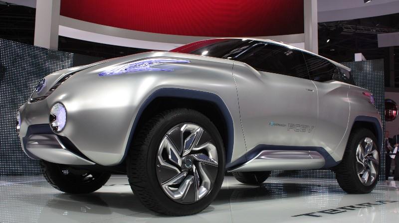 Nissan pense aussi au futur avec son concept Terra, faisant appel à une pile à combustible chargée de transformer l’hydrogène en électricité tout en rejetant de la vapeur d’eau…, avec, à l’avant de ce proto, le bloc électrique de la berline Leaf, alors que deux petits moteurs électriques se chargent des roues arrière.