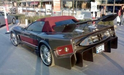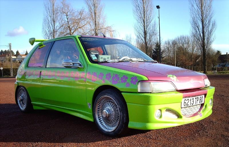 En gros, ça donne souvent des machins (en général c’est difficile de reconnaître la voiture d’origine) violets avec un tigre orange et violet peint à la main sur le capot !