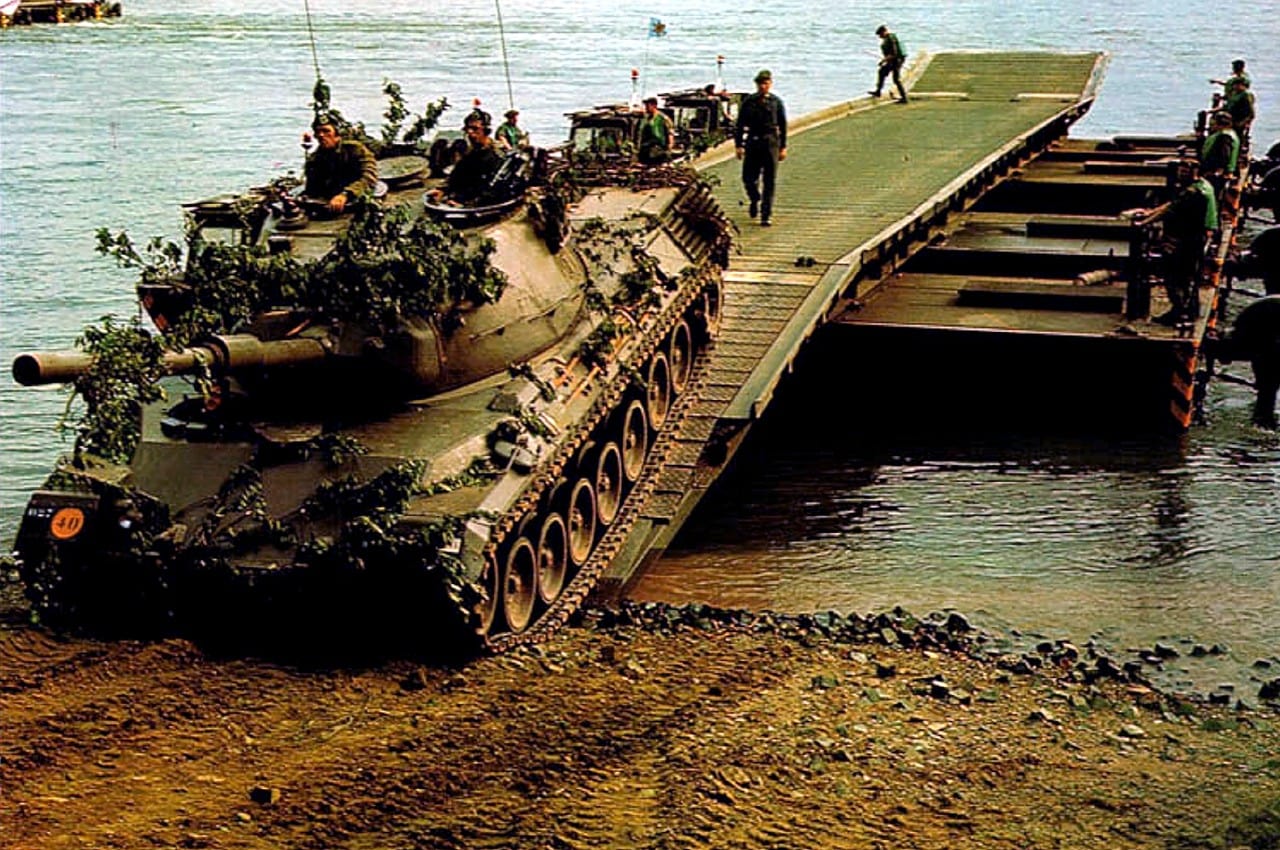 Ajoutons que ce Léopard pouvait traverser à gué une rivière de deux mètres de profondeur (avec au préalable une reconnaissance par le génie ainsi qu’une préparation à la plongée qui prenait moins d’une heure ) et qu’avec un « Schnorkel », ce Léopard pouvait plonger à plus de 4 m ( lors de tests effectués en juillet 1964, un Léopard a réalisé le passage du Rhin en immersion totale près de Cologne où le fleuve a une profondeur de 4,29 m ainsi qu’une largeur de 390 m ), vous avez une petite idée de sa mobilité.