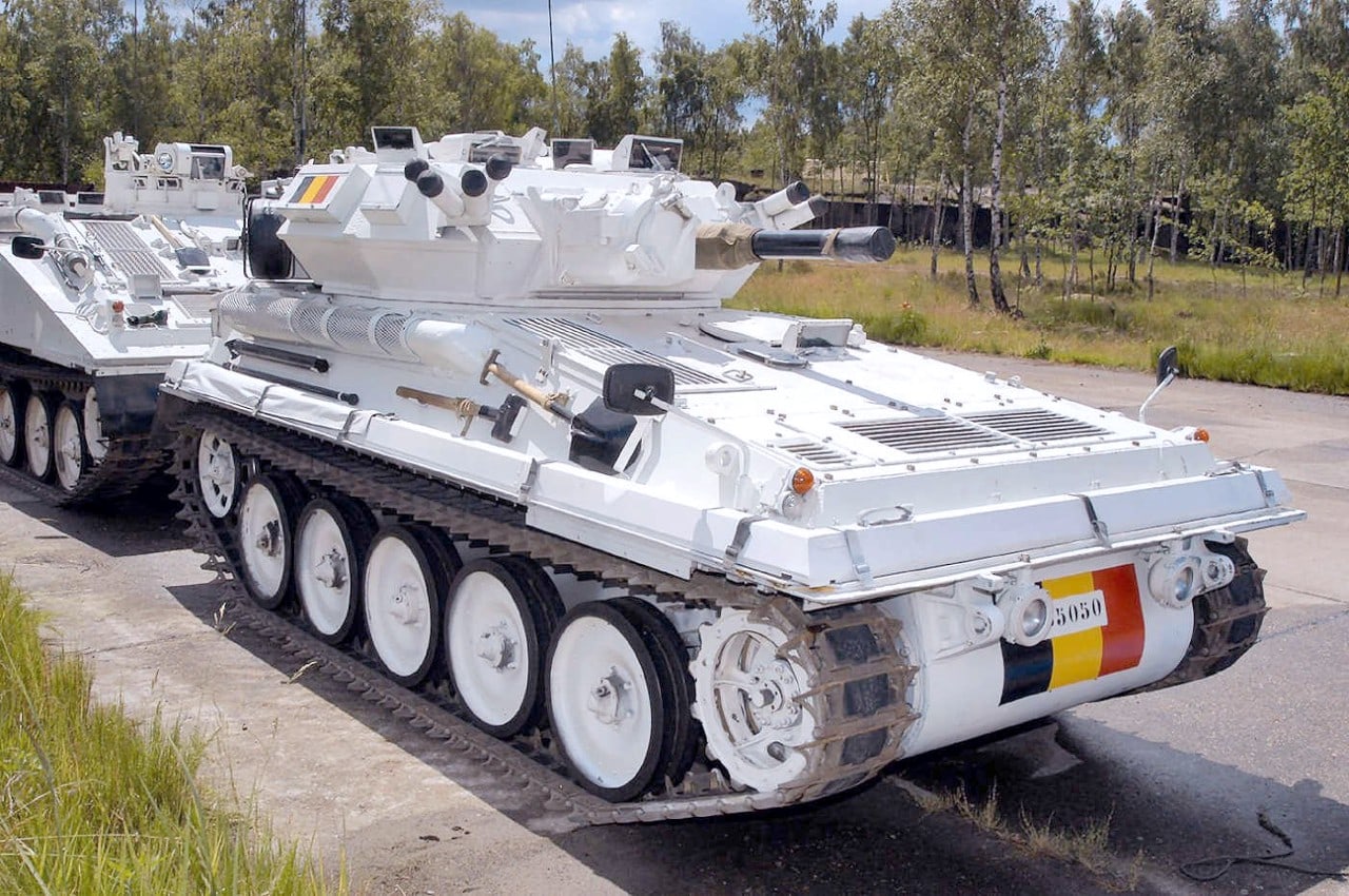 Un petit véhicule à chenilles très maniable avec trois hommes d’équipage, produit par la firme anglaise Vickers Alvis mais bien évidemment assemblé sous licence en Belgique à Malines chez British Leyland à raison de 701 exemplaires principalement au profit des unités blindées de reconnaissance.