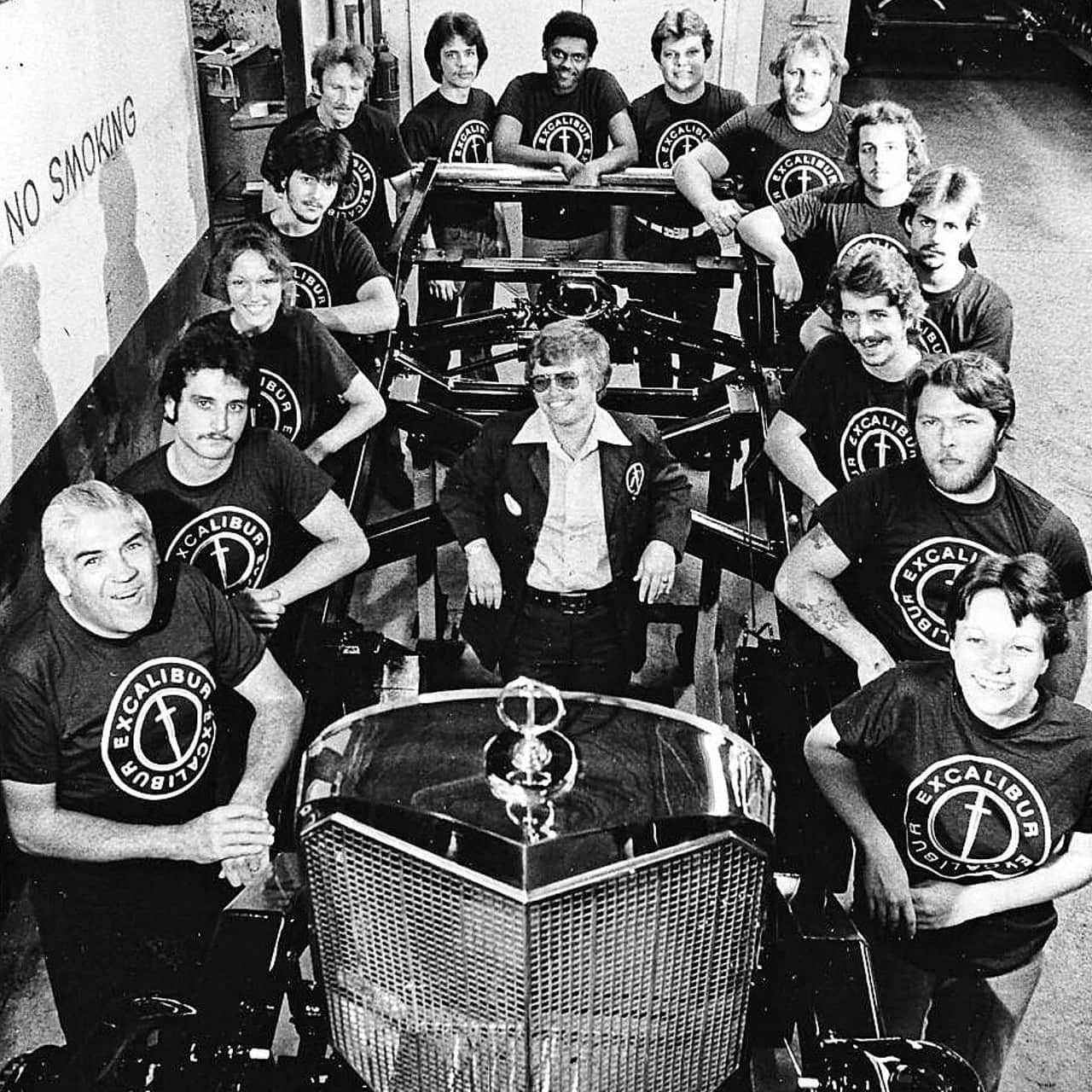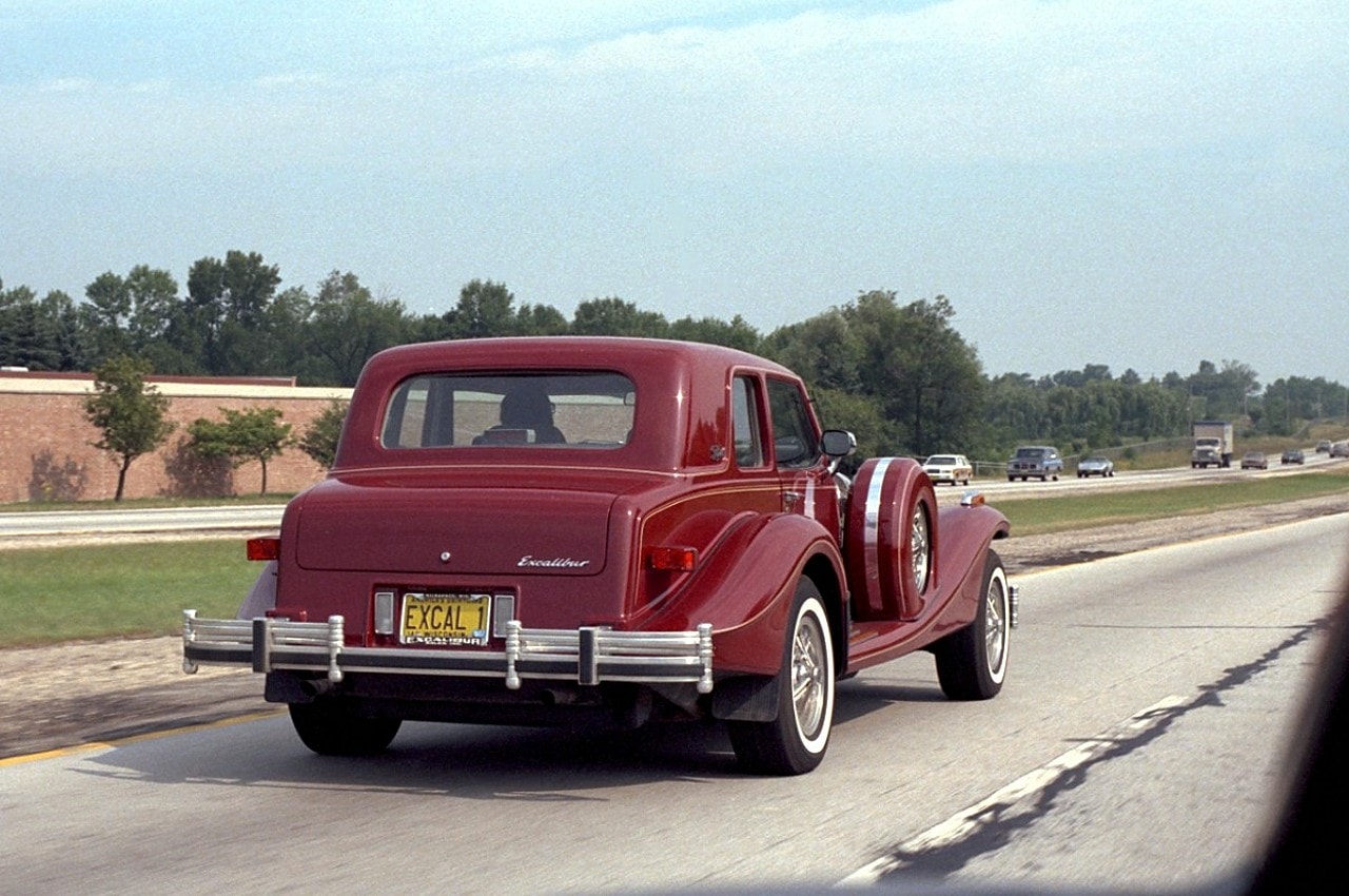 Donc, tout fut empirique, pas professionnel, un joyeux délire typique de la période hippie…, dans l’urgence, Brook Stevens a monté une “fabrique” pour que ses deux fils aient “un avenir”…, il a acheté 300 châssis Studebacker au rabais (cette firme avait quand même fait faillite)… et à ce moment, second miracle, un garagiste de New-York, Jerry Aleeen, à vrai dire le plus gros dealer General-Motors de la région, va financer l’affaire, pour autant que les Excalibur soient équipées d’un V8 GM…