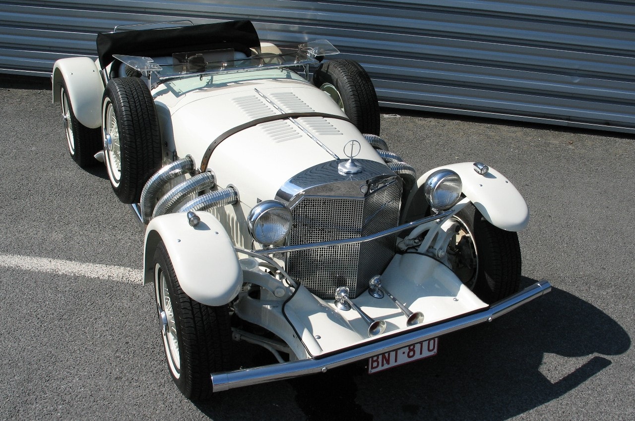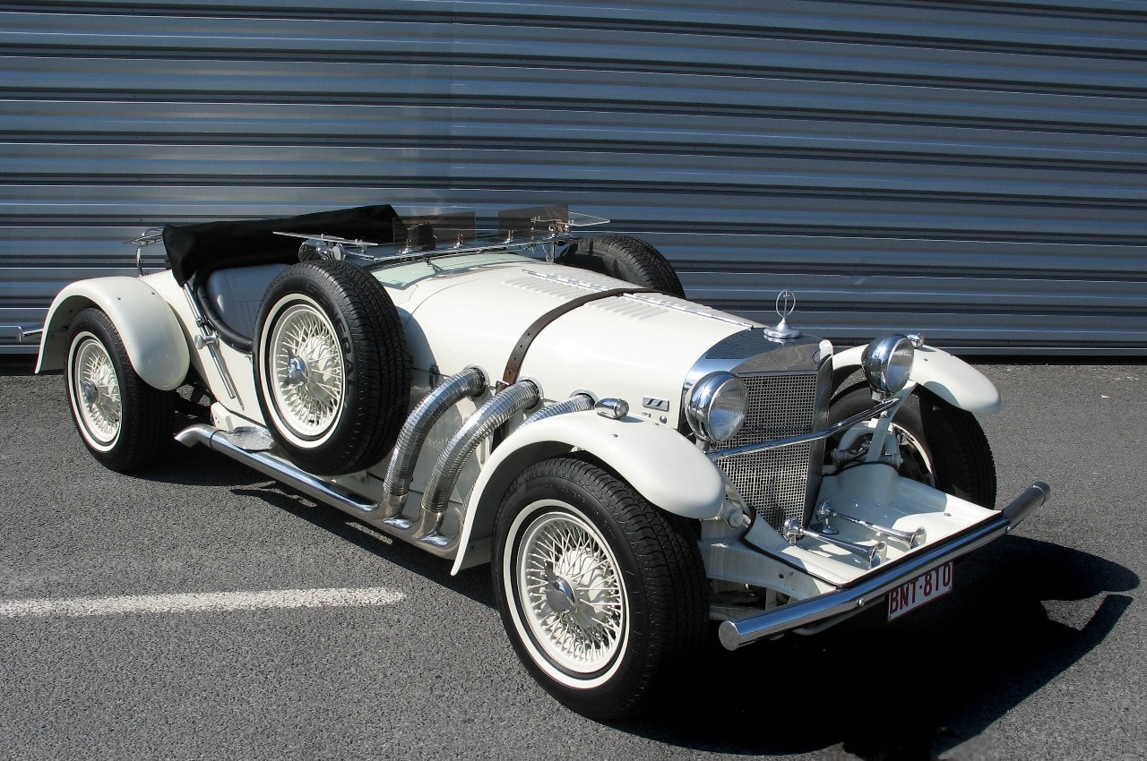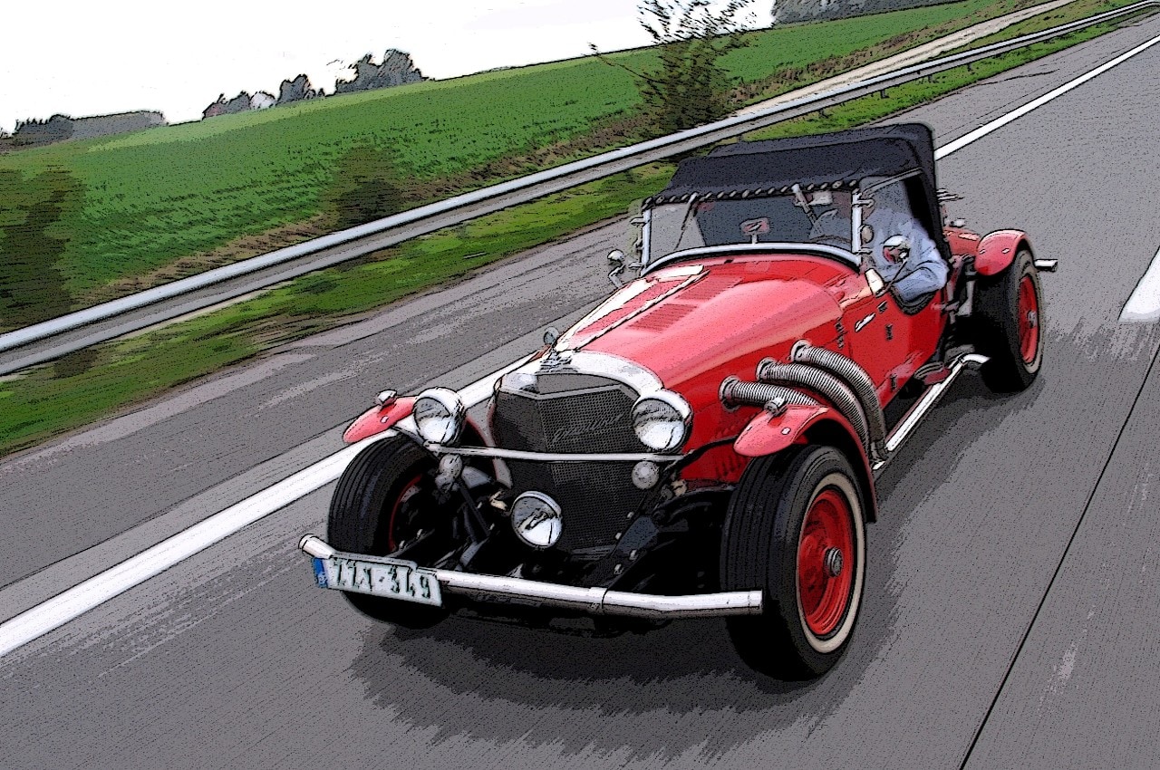 Avec son projet refusé, Brook Stevens a décidé de l’exposer dans le salon de l’auto national… et là…, miracle, John Wayne, Steve McQueen et d’autres… ont passé commande… (sinon…, au cas ou le projet de Brook Stevens aurait été accepté, c’est la “Mercebacker” qui aurait été commercialisée…, la première évocation d’une carrosserie à l’ancienne, une Mercedes SSK 1927, dont Brook Stevens avait un exemplaire dans sa collection personnelle)…