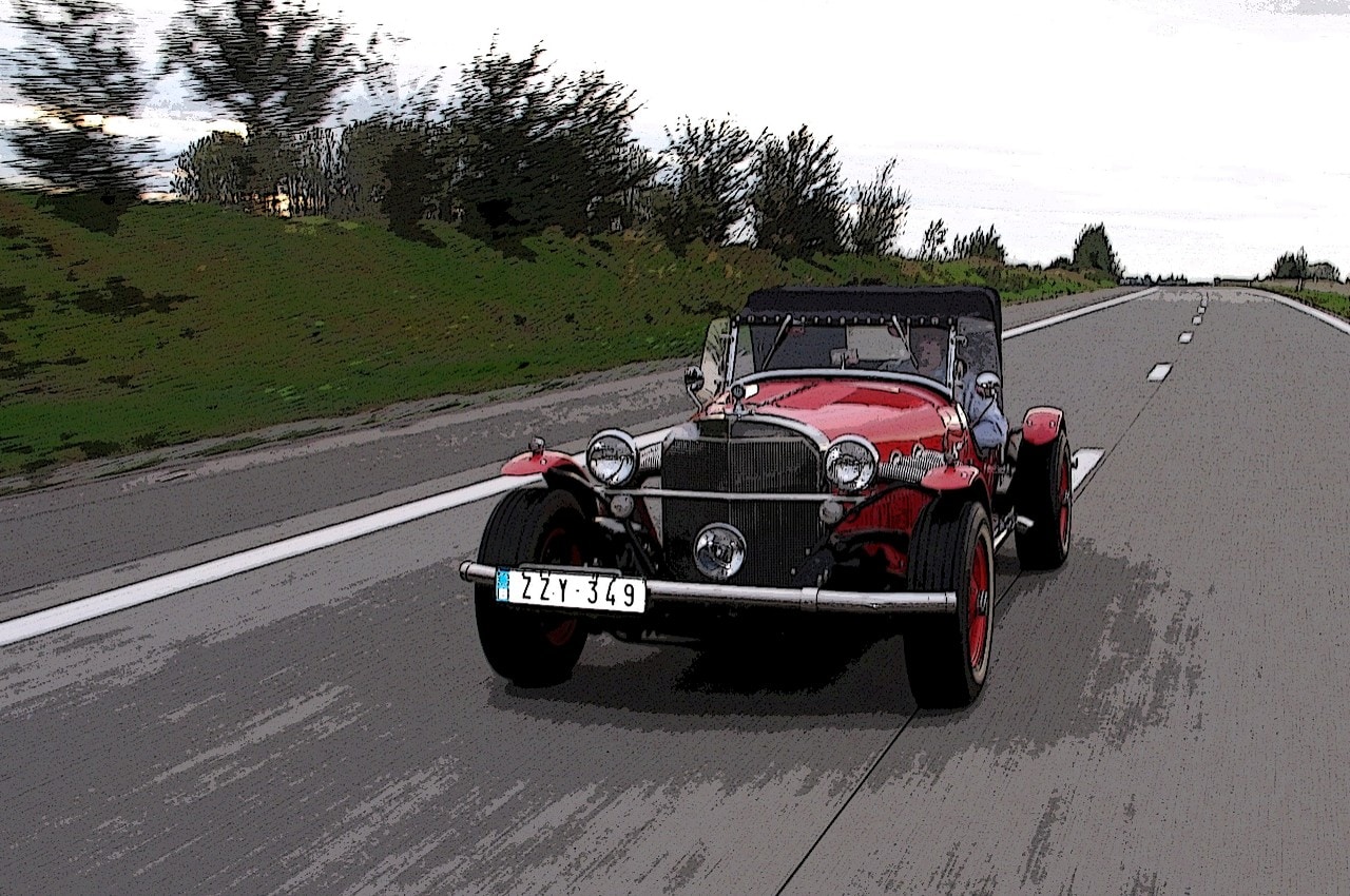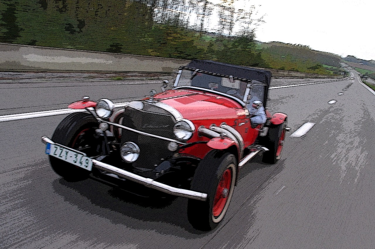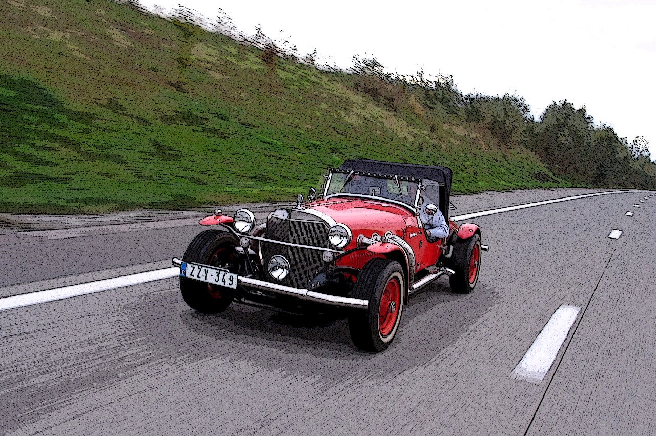 Fin des années ’60, étant jeune (quoique je le suis toujours, au moins dans ma tête), j’ai flashé grââââââve devant une Excalibur première série…, croisée à Knockout-le-mazout et suivie jusque Zeebruge (Belgique)…