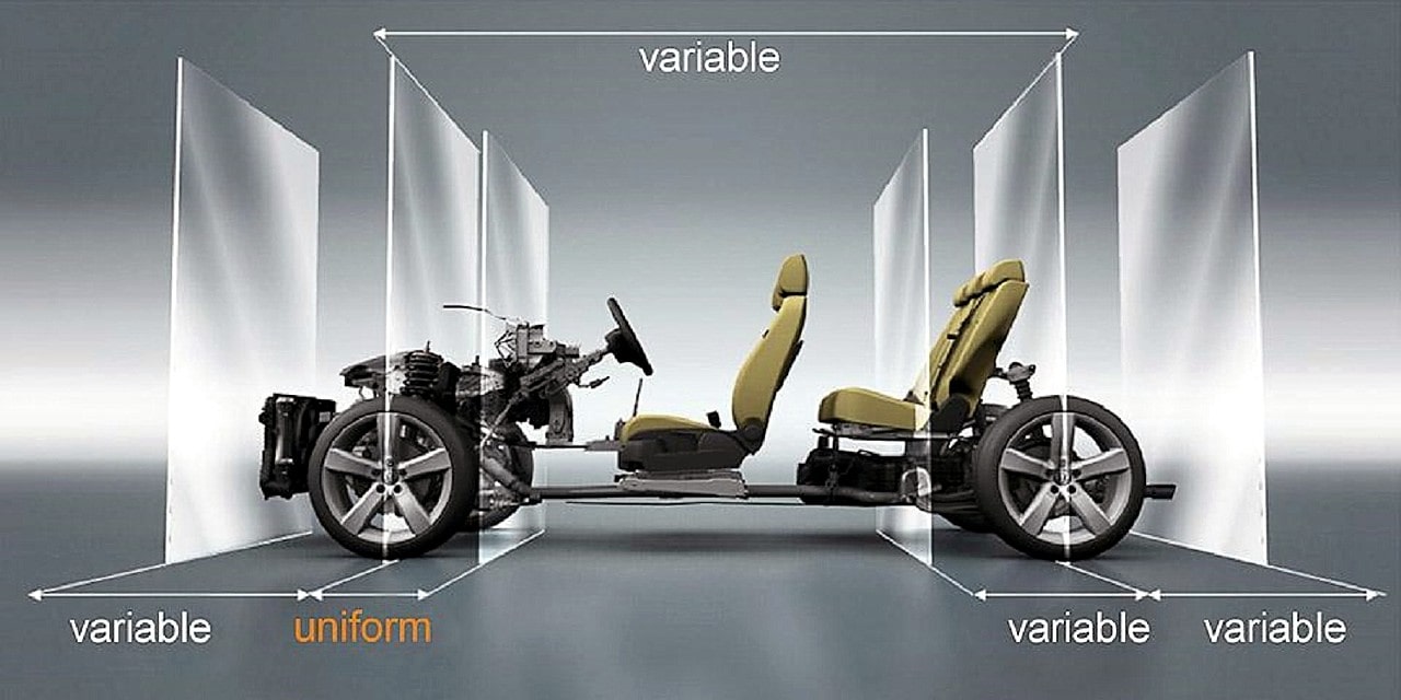 Un seul segment à cotes fixes est impérativement commun entre tous les modèles, il est compris entre la pédale d’accélérateur ainsi que le milieu des roues avant, ce qui implique une implication standardisée de tous les moteurs essence ou diesel mais également une conception radicalement revue de tous les blocs motopropulseurs.