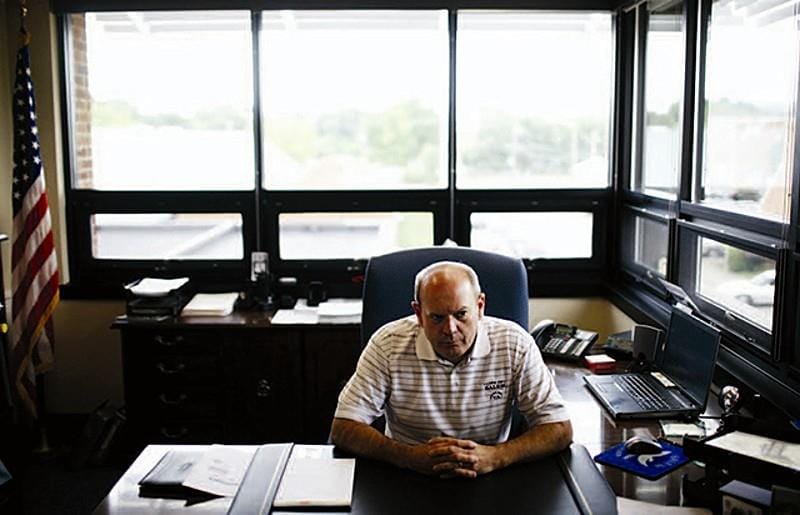 Comme le bureau de police était en face de l’hôtel, je suis allé discuter avec Jeff Dudley, le chef de la police, (sur la photo ci-dessous, il tient un sachet d’Amped qu’un de ses agents a acheté chez un buraliste) :“L’Amped et les marques de sels de bain sont apparu dans les bureaux de tabac de Roanoke et des environs en mars, après que les entreprises qui les produisaient se sont apperçu que leurs produits avaient un autre avenir que dans les baignoires…, ils ont envoyé des prospectus publicitaires avec plein de couleurs vives expliquant le bien être de les inhaller… et promettant de sérieux bénéfices à tous les buralistes. Le plus grand bureau de tabac du sud-est de la ville, D.K. Tobacco, a proposé la première tournée de sels de bain à des prix cassés, ses employés ont même porté, un temps, des tee-shirts afin de promouvoir ces produits…, à l’autre bout de la ville, un buraliste a employé un homme-sandwich pour faire la promo des sels de bain…. et en peu de temps, les acheteurs ont essaimé. Aux heures de rush, surtout en soirée, on aurait dit le parking d’un Walmart, certains clients revenaient cinq à six fois par jour, il y avait des files d’attente dignes d’une soupe populaire. J’ai vu fleurir les affaires de D.K. Tobacco juste après que la presse locale a fait un sujet dessus. D’un coup, ce n’était plus seulement les défoncés de base qu’on voyait affluer chez D.K. Tobacco…, des ouvriers de chantier se pointaient dans les camions de la ville, tout le monde avait entendu parler du truc, même les grands-mères. Tout le monde a voulu essayer. En quelques semaines, l’ambiance du quartier s’est sévèrement dégradée, les confrontations violentes entre habitants ou avec la police sont devenues monnaie courante. On s’est retrouvé submergés. Au cours du seul mois de mai, la police municipale de Roanoke a dû s’occuper de 34 affaires liées aux sels de bain. C’était plus qu’un simple problème. C’était une épidémie. Et ça a été tellement soudain ! À ce moment-là, les difficultés ne se limitaient plus à la seule ville de Roanoke ; les sels de bain ravageaient le comté dans son intégralité. Un de nos agents s’est battu avec un gamin pendant 9 minutes. La plupart des affrontements qu’on a avec la population ne dépassent jamais une minute. Là, le gamin est sorti de chez lui, nu comme un ver, et a chargé. Un médecin urgentiste interviewé par une chaîne de télé locale a même déclaré que si la cocaïne et les amphétamines étaient des tempêtes tropicales, les sels de bain étaient un ouragan”…