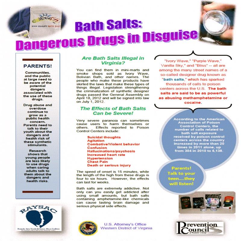 Juste avant l’effroi causé par le zombie cannibale de Miami, les autorités locales et fédérales ont tenu une conférence de presse à Roanoke pour informer la communauté des dangers liés aux sels de bain et aux produits Amped, White Water Rapids, Go-Fast et Snowman…, pour n’en citer que quelques-unes…, les autorités ont expliqué que ceux-ci présentaient des similarités avec la meth ou la cocaïne et que d’après le Federal Analog Act, ils étaient illégaux.
