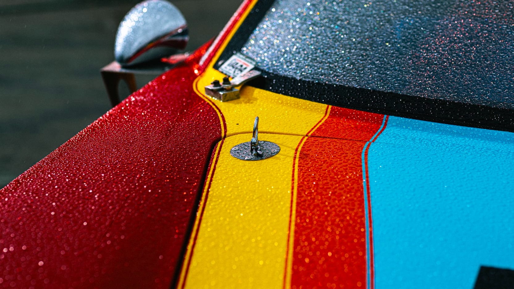Le moteur et la transmission d’origine ont été remplacés par un nouveau moteur construit par Pick’s Racing Engines sur base d’un bloc Cosworth BDA avec des pistons et segments CP, des bielles Carillo, un vilebrequin Marine (Compression de 12:1), deux carburateurs Weber 45 DCOE, des collecteurs d’échappement en acier inoxydable personnalisés, un système de lubrification à carter sec, un allumage Mallory, une transmission Hewland à 5 vitesses et des accessoires Moroso. Les supports de moyeu et d’autres pièces de suspension ont été remplacés par des composants “compétition” et des extensions de passage de roue Porsche 914 ont été ajoutées pour aider à couvrir les nouvelles jantes en alliage Jongbloed de 13 x 9 (à l’avant) et 13 x 11 (à l’arrière).