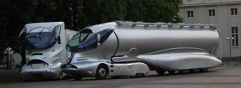 Autant j’ai cru vraiment que Luigi Colani était un designer hors-pair, respectant au minimum un fil conducteur, autant maintenant que ce génie est décédé, je vois ce camion en totale roue libre, en une application littérale des techniques du style gonzo, tel qu’il a été dévoyé : une plongée sans recul au cœur de la folie autoroutière, avec un bonheur irresponsable.