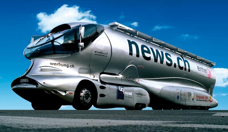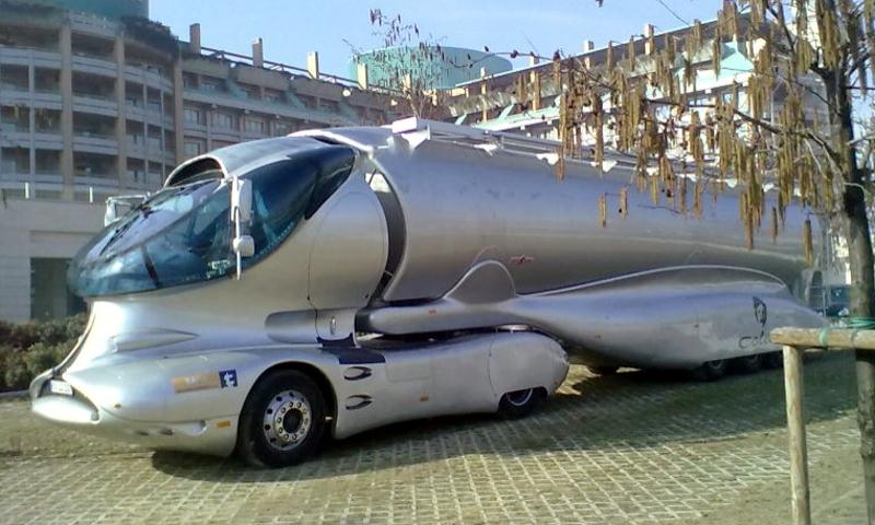 En hommage au génie de Luigi Colani voici une œuvre de poids et de taille…, mais ne vous laissez pas abuser par son nom : EleMMent Palazzo…, ni par la personnalité de son réalisateur maintenant défunt : Luigi Colani…, ni par la société qui a construit cet engin : Marchi Mobile…, car c’est une véritable bénédiction, une authentique, sincère et jouissive œuvre comme on n’en avait pas vu depuis des temps immémoriaux…, c’est (de loin) la plus gigantesque folie roulante à ce jour.