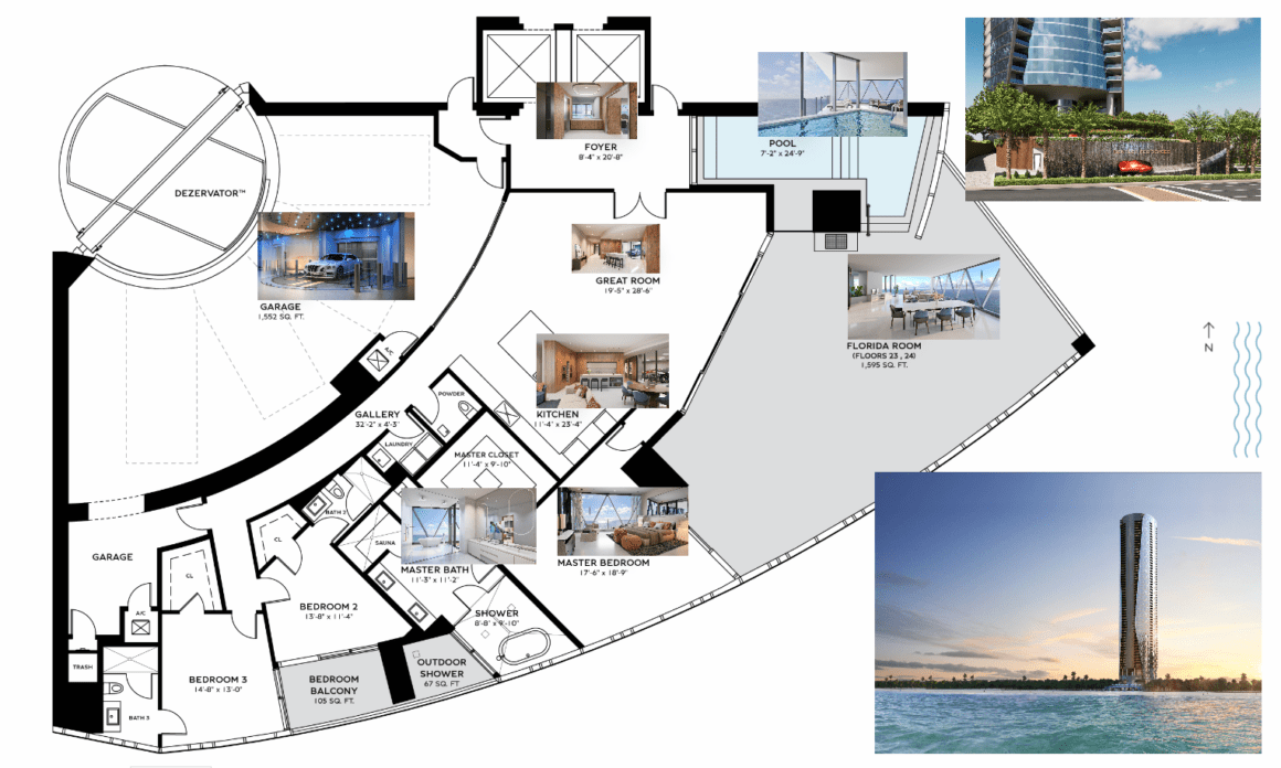 Les Bentley Residences comprendront quatre “Dezervators”, une conception d’ascenseur unique, conçue pour transporter les automobiles et leurs passagers jusqu’au dernier étage du bâtiment de 749 pieds. Chaque ascenseur dispose d’un système hydraulique qui installe chaque voiture par l’ingéniosité d’un système de navettes robotiques.