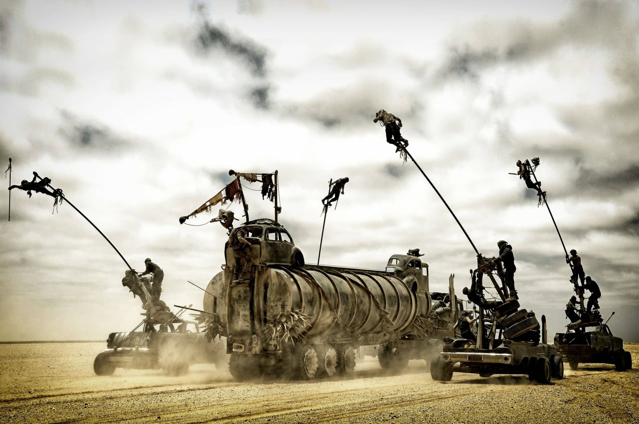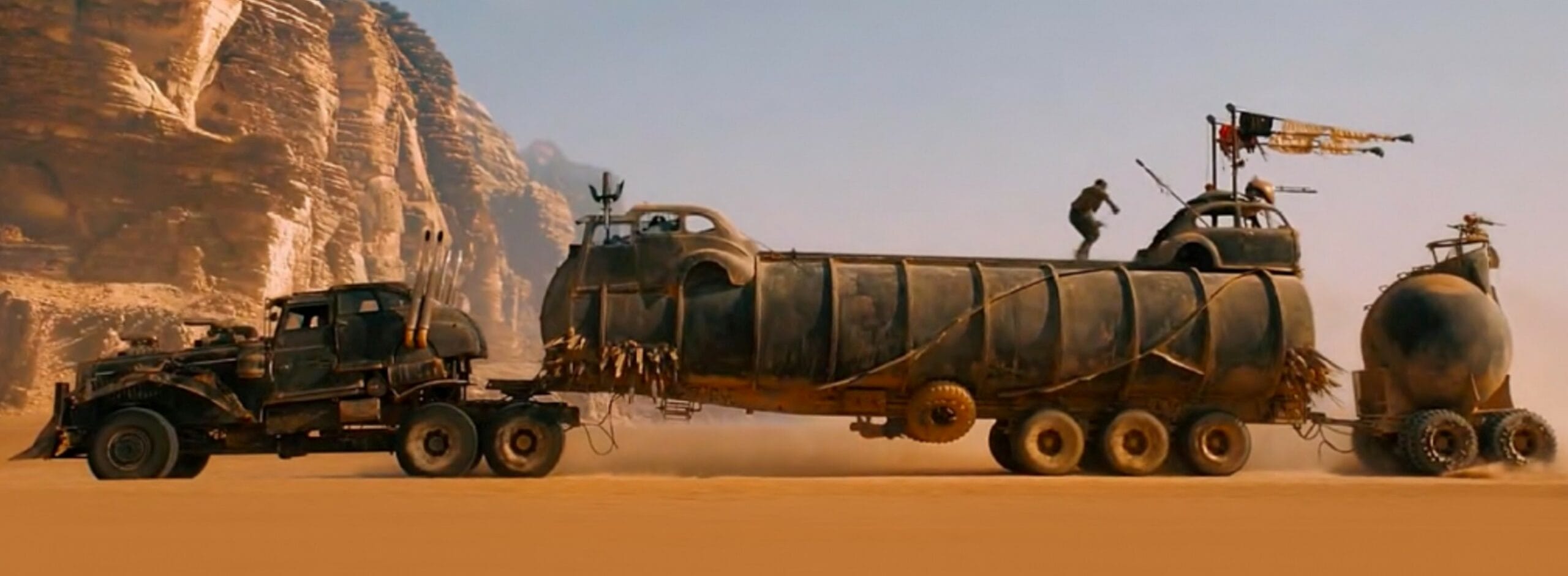 Dans ce film, son créateur/réalisateur, George Miller dirige la ferraille, les chromes, les flammes, les corps en sueur et les vapeurs d’essence comme autant d’instruments pour composer une symphonie enragée. C’est brillant, stupéfiant, magnifique, Fury Road, ça ne se décrit pas vraiment, ça se constate de deux manières différentes… Je commence par la sympathique, fait une pause pour vous dévoiler une vente aux enchères des véhicules du dernier Opus puis termine par une remise en question de ma propre vision première, pour aboutir à son contraire !