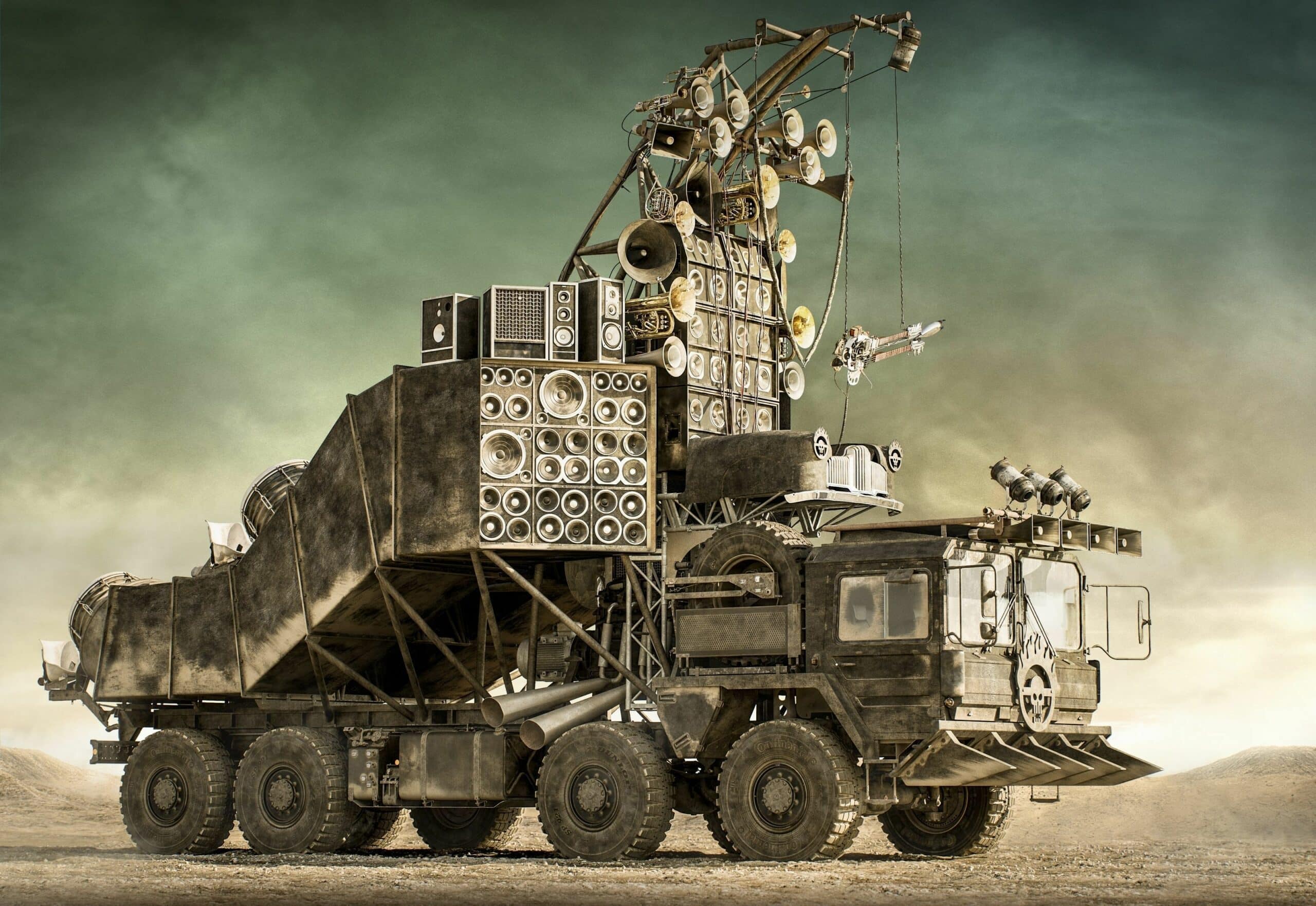 Les bagnoles du film Fury Road étaient donc censées représenter l’enfer nitreux, nocif et sans fioritures d’un univers destroy, qui avait depuis l’arrivée du Kustomising et des Hot-Rods, démontré l’étrange capacité des Kustomizeurs déviants à apporter encore plus de laideur aux masques de la mort assénée dans les plus atroces tortures, souffrances et destruction ! Chacune de ces survivantes de l’apocalypse (qu’a été le tournage de Mad Max Fury-Road), ouvre le bal à seulement 1 $ australien symbolique ! Mais ne vous attendez pas à ce qu’elles soient bon marché et bradées, avec des estimations de centaines de milliers à des millions de dollars australiens ! “Mais pourquoi ces véhicules sont-ils mis en vente ?”, vous demandez-vous ? Plutôt que de prendre la poussière dans des hangars, les producteurs du film ont, disent-ils, préféré faire profiter les fans ! Il n’y a pas de petits profits. Il faut dire que pour les besoins du tournage du film, budgété 150 millions de US dollars, la production avait investi de lourdes sommes dans la customisation de véhicules pour les transformer en machines infernales.