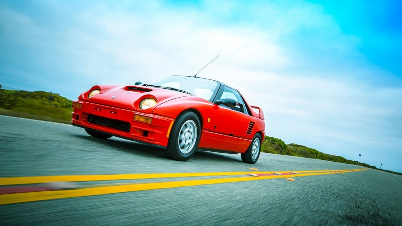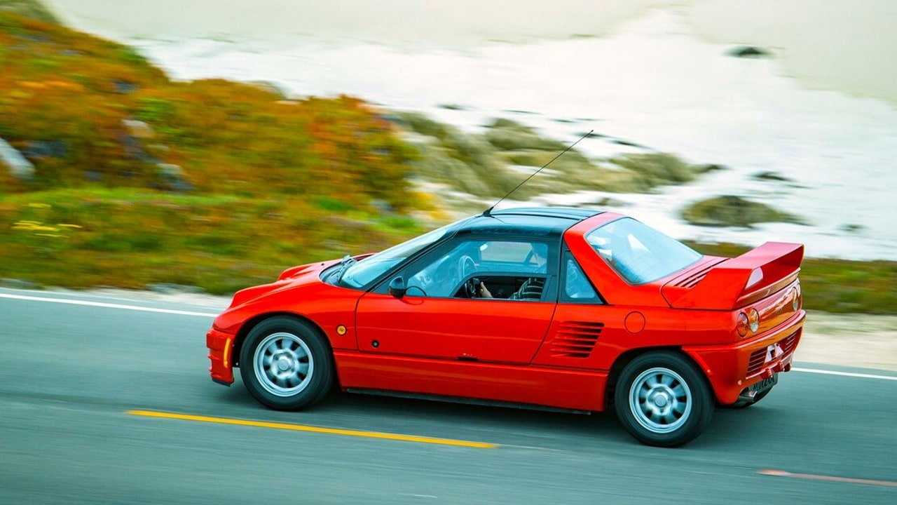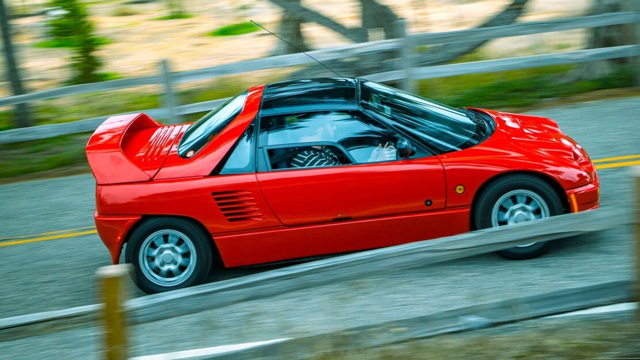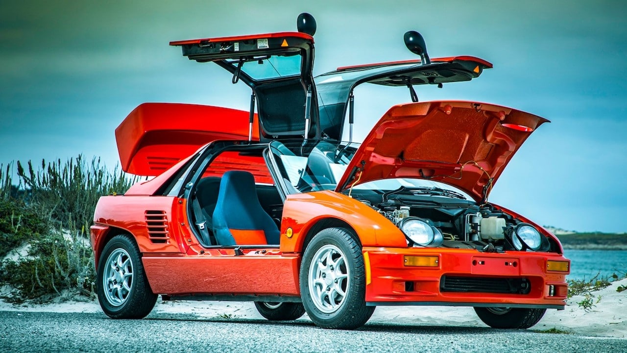 Développée dans les années 1980, la voiture était un condensé des éléments de style de l’époque, comme les entrées d’air latérales façon Ferrari Testarossa… les portes Gullwing (ailes de mouette) inspirées de la DeLorean DMC-12… les vitres latérales sectionnelles façon GT40… un profil latéral façon Fiat X1/9… et la palette bicolore de la Ferrari 512BB.