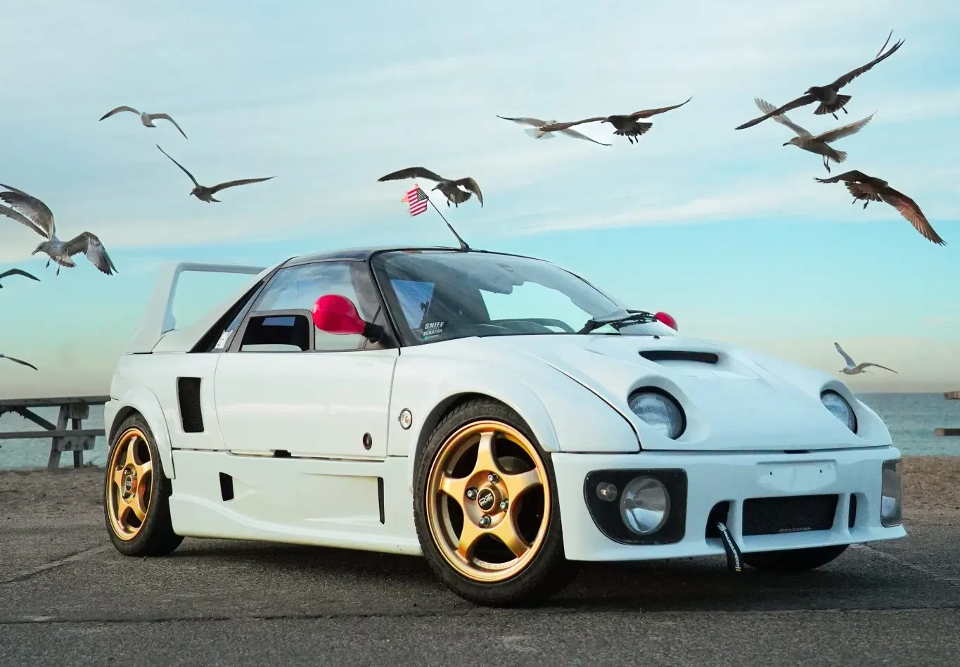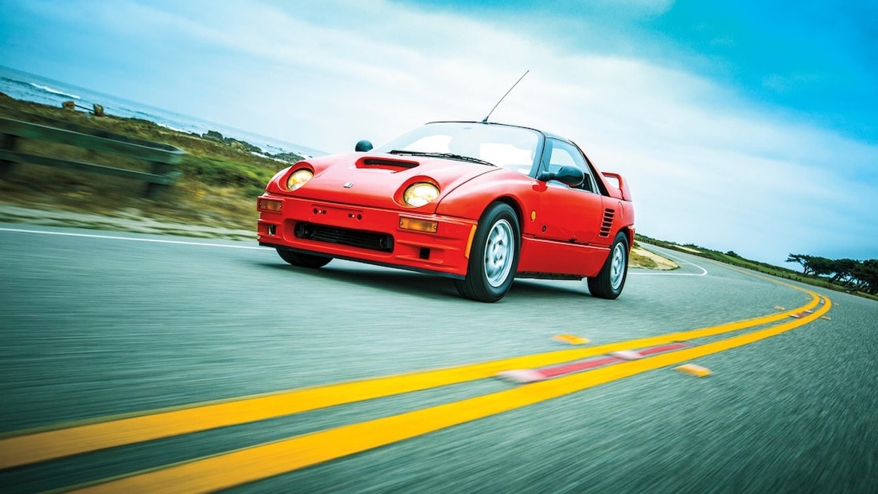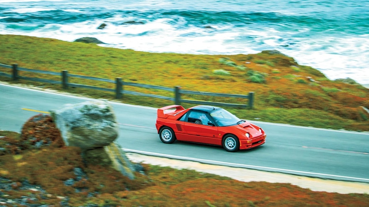 Développée dans les années 1980, la voiture était un condensé des éléments de style de l’époque, comme les entrées d’air latérales façon Ferrari Testarossa… les portes Gullwing (ailes de mouette) inspirées de la DeLorean DMC-12… les vitres latérales sectionnelles façon GT40… un profil latéral façon Fiat X1/9… et la palette bicolore de la Ferrari 512BB.