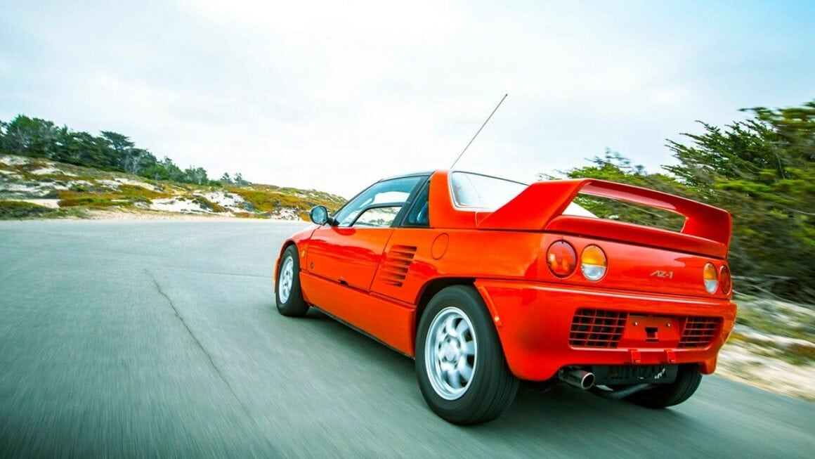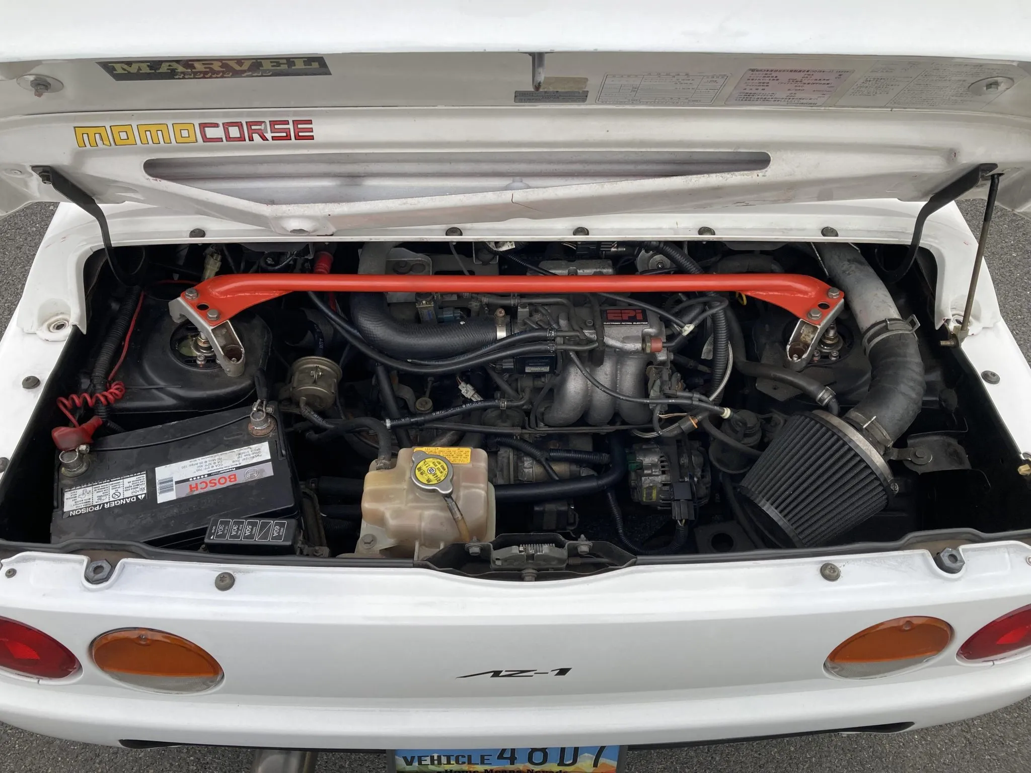 Autozam s’est spécialisée dans la vente de Kei cars souvent fabriquées par Suzuki et de voitures de petites taille mais plus grosses que les kei. L’AZ-1 à moteur central est propulsée par un trois cylindres en ligne turbocompressé de 657cc développant 66cv avec une transmission manuelle 5 vitesses.