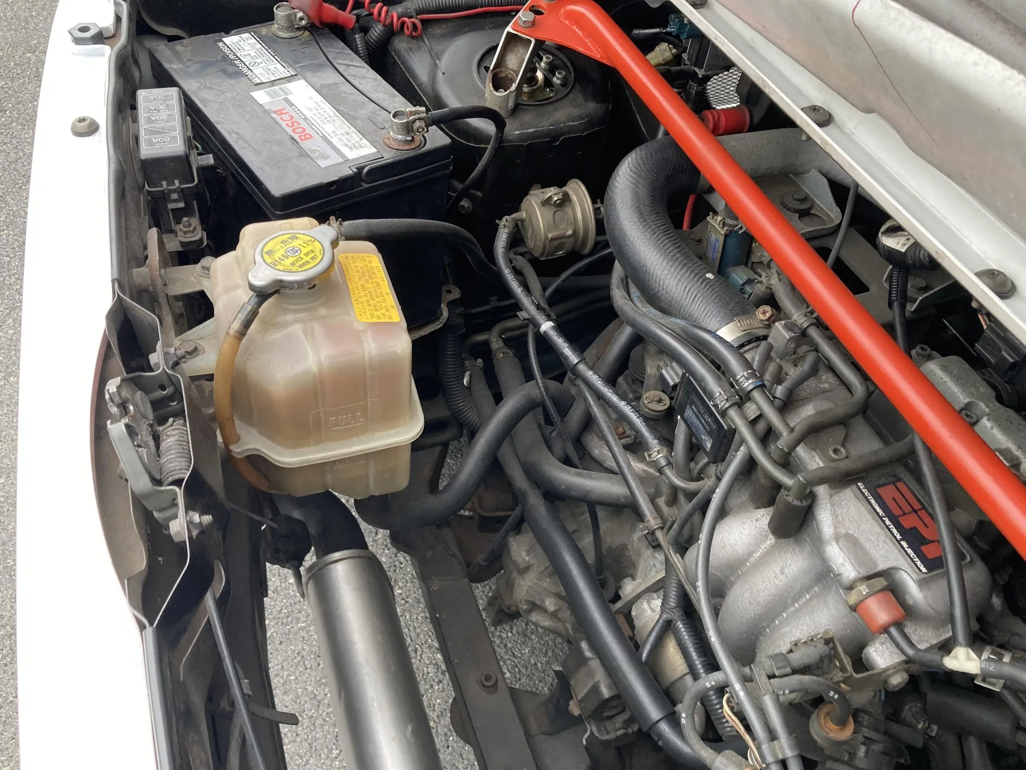 Tournant la clé dans le barillet ad-hoc, le “three-banger” turbocompressé de l’AZ-1 explose son bonheur de vivre dans un vacarme épouvantable avec une misérable note unique d’échappement assez banale semblable à un couac de poivrot en suffocation, ce qui s’avèrera très décevant du début à la fin de mon calvaire. Mais une fois que j’ai réussi à débrayer et à insérer le levier de vitesses en première, en maintenant la pédale d’embrayage enfoncée et donné un peu d’accélérateur, le son strident s’intensifie et le fera à mesure que les régimes reprennent.