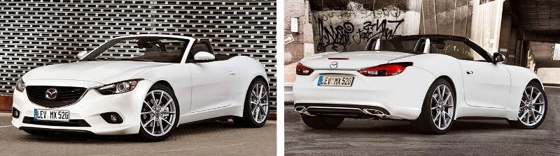 Cependant, rien ne dit que le visage de la nouvelle MX-5 sera celui de cette photo…, elle manque vraiment de cohérence pour être crédible, avec cet avant de Mazda 3 version 2013 et cet arrière de l’actuel roadster…, de plus, cette Miata étant attendue en 2015, il semble bien peu probable qu’elle en soit à ce stade de design…, cependant, il y a quand même de fortes chances qu’elle ressemble à cette photo, c’est en tout cas parfaitement logique.