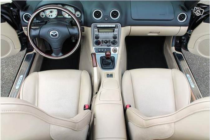 Les “Memories II” sont proposées à partir de décembre 2001 (1.500 exemplaires), elles reprenent le même concept, mais, cette fois avec une capote noire et une teinte rouge métalisée qui remplacera le bleu marine.Les “Memories III” apparaîssent au cours du 3iéme trimestre 2004…, c’est la série la plus aboutie…, le pommeau de levier de vitesse et le frein à main sont “en bois d’arbre véritable” (gag !)…, un superbe volant également en bois, mais en ce cas incrusté d’un insert blanc, trône dans un intérieur en cuir crème qui respire l’élégance et le bon goût avec quelques touches alu et chrome…, elles sont proposées en motorisation 1L6 de 110 chevaux et 1L9 de 146 chevaux au tarif de, respectivement, 21.980€ et 23.930€…, l’équipement comprend des sièges chauffants, un windschott intégré, des jantes 16 pouces spécifiques disponibles en option, un système audio 6 haut-parleurs avec autoradio 6 CD ainsi que la climatisation…, en France, la série des “Memories III” ne sera disponible que dans 2 teintes extérieures : noir et vert.L’Allemagne seule bénéficiera de ce sublime Festvalschwartz métalisé qui passe du noir à l’aubergine avec des reflets de rouge en fonction de la lumière…, environ 500 exemplaires ont été produits dans cette teinte…, s’il est une Mazda MX5 à acquérir…, c’est très probablement celle-là !