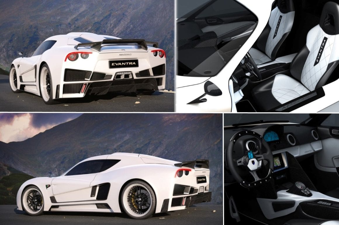 Finalement la supercar, qui était une F&M, s’est appellée Evantra, une folie développant jusqu’à 603 chevaux grâce à un Porsche 6 cylindres Boxer !