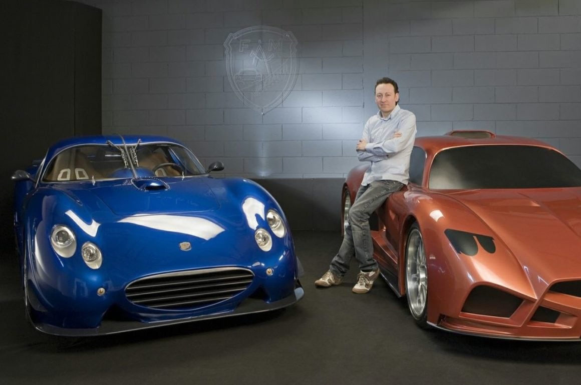– “Je suis né dans la magnifique Toscane, à Pistoia le 1er Février 1974… Mon grand-père était mécanicien ; mon père créait tout le temps ce qui lui passait par la tête, c’était la fête ! Entre deux balades en voiture et un repas familial, ils m’ont guidé afin de de réunir leur passion, mais pas n’importe quoi ni n’importe comment. Je trouvais Ferrucio Lamborghini désagréablement bête et Enzo Ferrari insupportable. J’aimais par contre le tragique des frères Maserati : tous me donnaient l’impression de vivre quelque chose d’intense dans une époque qui l’était tout autant, mais qui tourne actuellement au cauchemar, c’est dramatique. A l’époque ou ces personnages vivaient encore, c’était une vie parallèle à la monotonie, une vie passionnante, aux antipodes de mon existence joyeuse d’enfant entourée d’amour et de bienveillance. J’ai donc commencé ma carrière comme carrossier. Mon maitre était Mario Farralli. Avec lui, pendant plus de 20 ans, je vais restaurer des modèles rares comme les Cisitalia 202, Ferrari 500 Mondial, et la Maserati 450 Costin/Zagato préparée spécialement pour Sir Stirling Moss et les 24 heures du Mans de 1957. Après m’être intéressé également à la moto et plus particulièrement les Ducati, je me suis lancé dans les courses de côte à bord de sports-prototypes Abarth que je restaurais moi-même. En 2001 j’ai dessiné une barchetta avec Mario Faralli pour un client. F&M était né. Ensuite nous avons créé l’Antas, puis la Vulca “S” sur un design de Zsolt Tarnok, un Bulgare talentueux qui a également dessiné la voiture suivante : la Mugello que nous avons ensuite appelée Evantra… Je suis donc vraiment fier, chers amis, de vous présenter la nouvelle Evantra. C’est un concept personnel qui est absolument hors des tendances du marché d’aujourd’hui, une réalité précise et typiquement italienne dans son identité stylistique… elle est disponible avec un groupe motopropulseur V8 performant de Corvette, l’ensemble étant parfaitement en symbiose dans les formes et les fonctions. L’Evantra V8 n’a pas été créée pour tout le monde, elle est faite pour des gens fortunés qui savent assumer ! Elle génère des émotions exclusives. Mais j’ai également créé une version de 603 chevaux grâce au 6 cylindres à plat de la Porsche” !