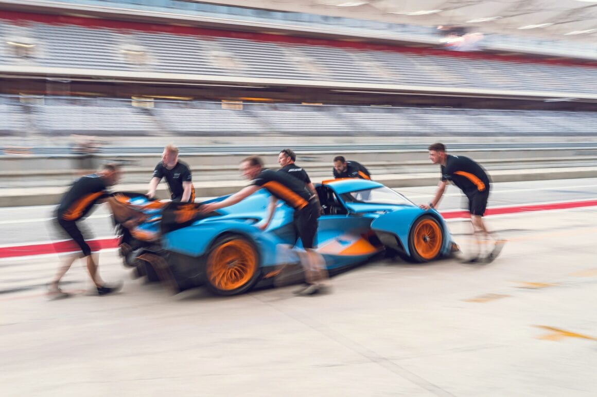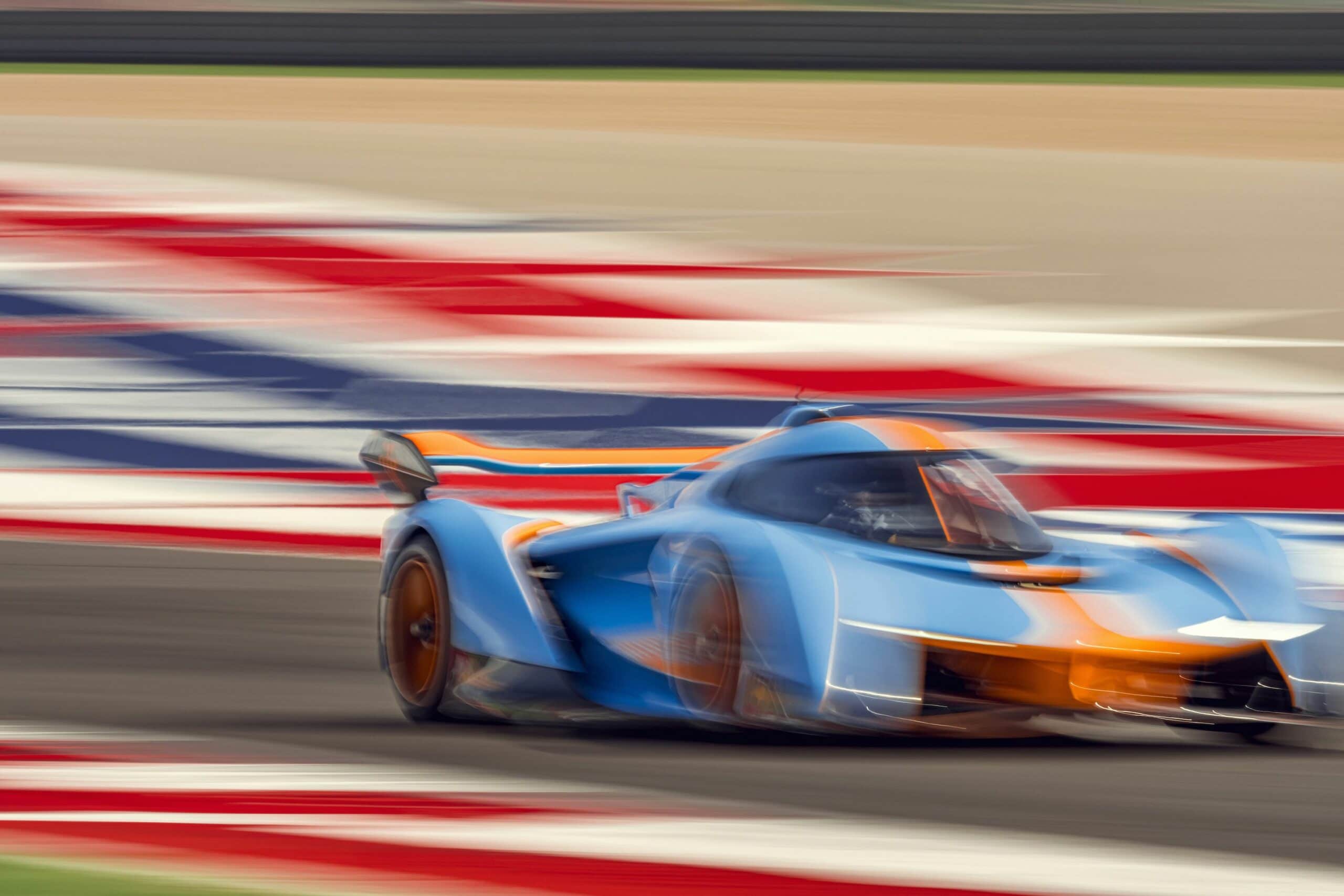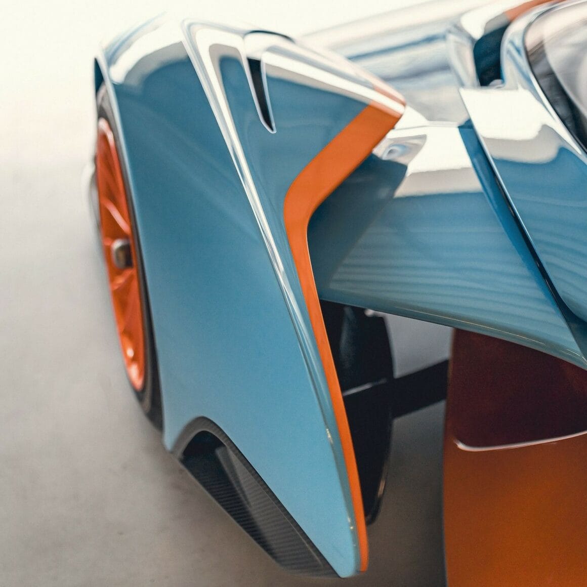 Cette Solus GT coûte plus de 3,7 millions de dollars pour qui en veut et a des moyens. Le fait d’être éditeur d’un des plus gros web-site d’autos déjantées extraordinaires et d’avoir été créateur de Chromes&Flammes, est un Pass vers l’absolu qui permet de me familiariser avec l’extraordinaire telle cette Solus, même lorsqu’on peut la toucher pour apprécier ses détails (les longs tunnels venturi, l’architecture des suspensions complexes, l’élégant cockpit étroit – il y a quelque chose d’irréel à être là…. Seulement 25 Solus GT seront produites, et il est facile d’imaginer qu’elles ont été téléportées du futur. Aux couleurs familières de Gulf, cette Solus GT se transforme en un bleu inimitable à grande vitesse sur le Circuit des Amériques à Austin, Texas, USA.