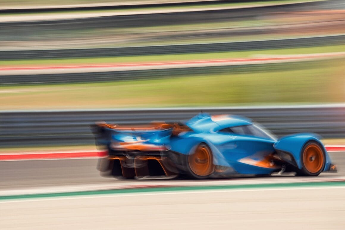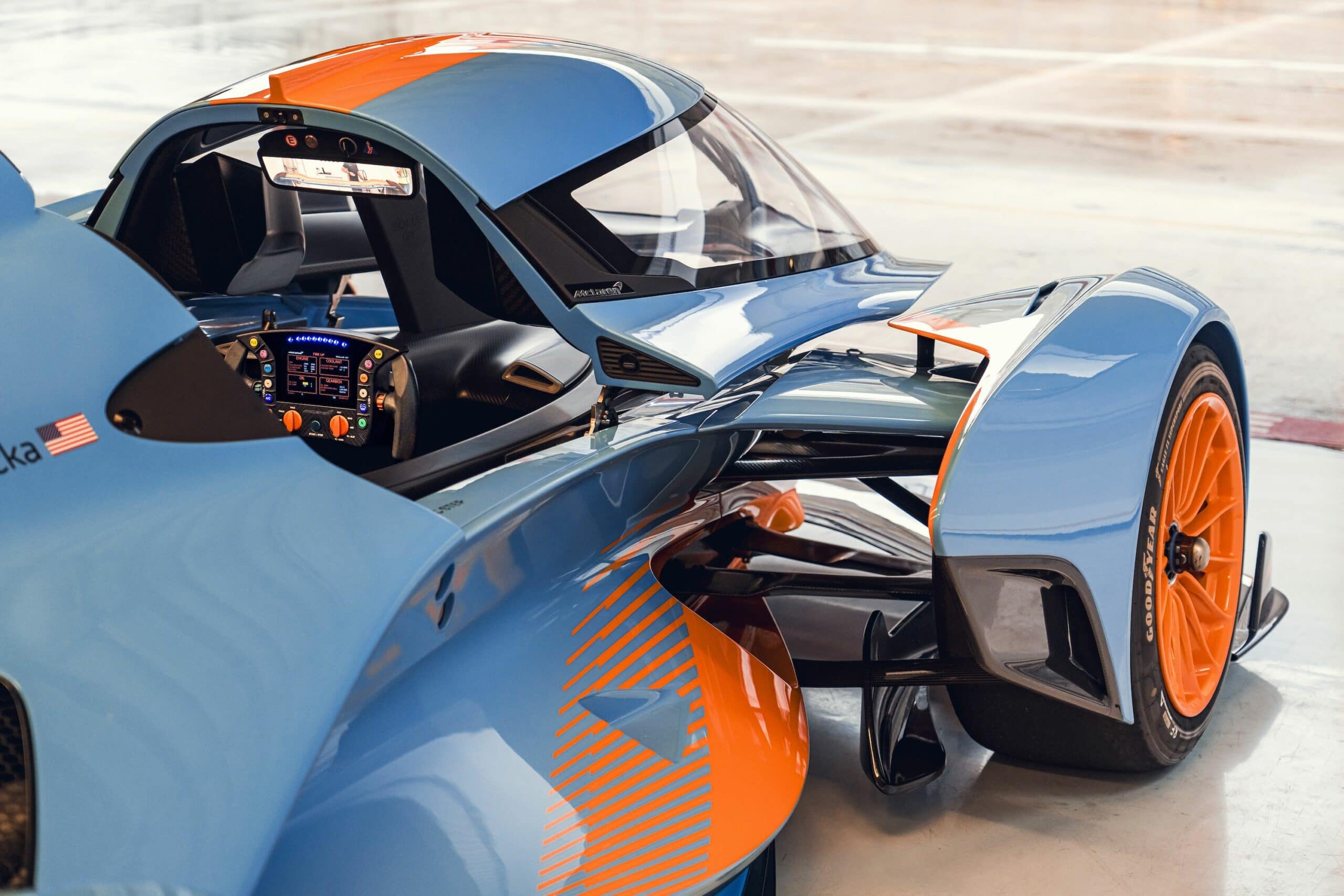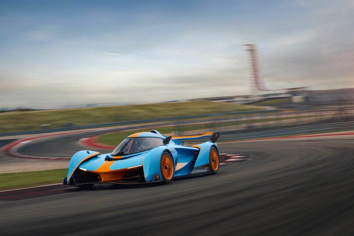 Cette Solus GT coûte plus de 3,7 millions de dollars pour qui en veut et a des moyens. Le fait d’être éditeur d’un des plus gros web-site d’autos déjantées extraordinaires et d’avoir été créateur de Chromes&Flammes, est un Pass vers l’absolu qui permet de me familiariser avec l’extraordinaire telle cette Solus, même lorsqu’on peut la toucher pour apprécier ses détails (les longs tunnels venturi, l’architecture des suspensions complexes, l’élégant cockpit étroit – il y a quelque chose d’irréel à être là…. Seulement 25 Solus GT seront produites, et il est facile d’imaginer qu’elles ont été téléportées du futur. Aux couleurs familières de Gulf, cette Solus GT se transforme en un bleu inimitable à grande vitesse sur le Circuit des Amériques à Austin, Texas, USA.