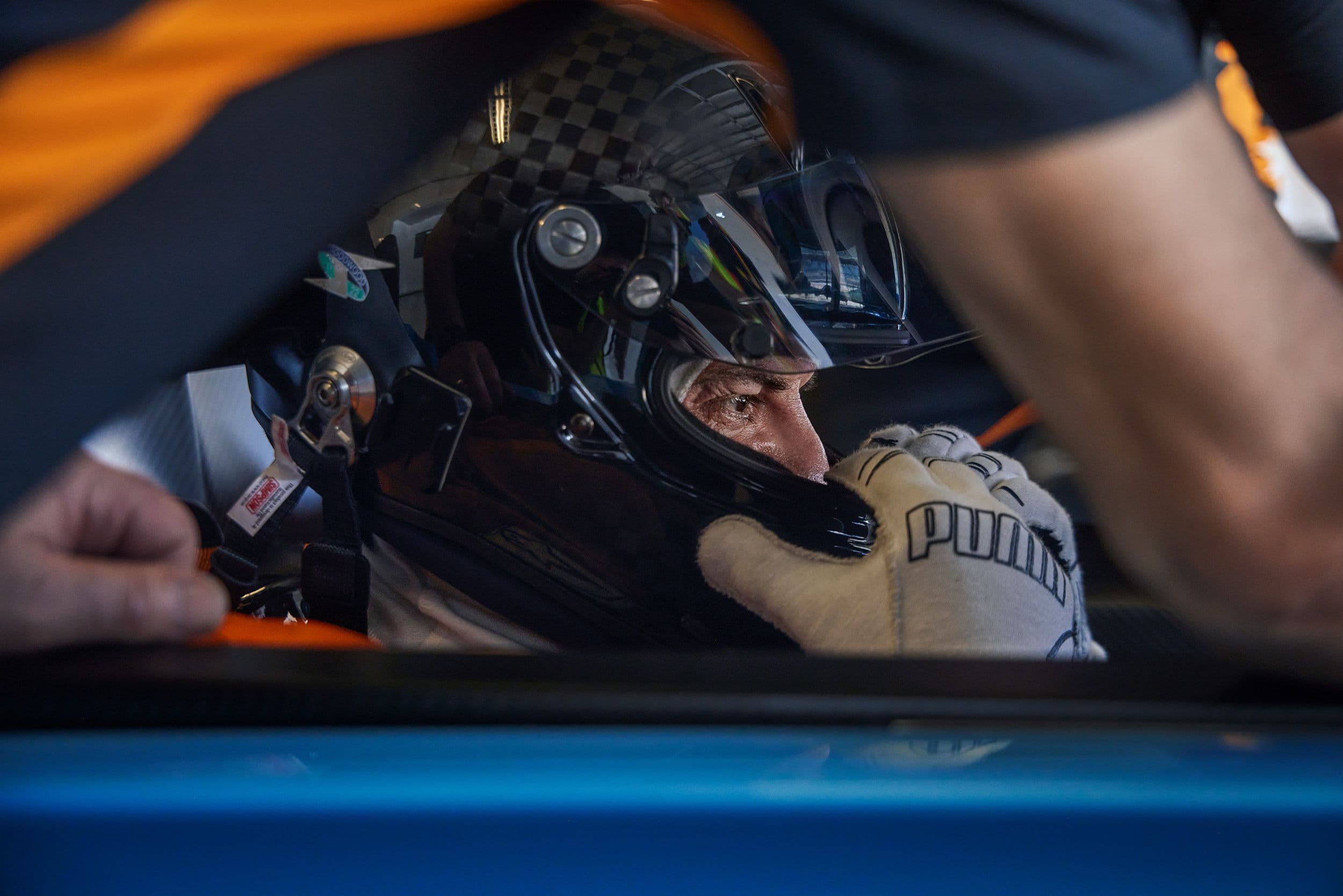 À son sommet se trouve l’affichage numérique de la rétrovision. La position de conduite est basse et mes pieds sont à peu près au niveau de mes hanches. Malgré tout, il m’est difficile de discerner complètement la réalité de ma situation jusqu’à ce qu’un ingénieur fasse glisser silencieusement la canopée jusqu’à ce qu’elle se ferme. Soudain, le monde entier se met au point mort. La vue est magnifique. Ce longeron semble disparaître, et le pare-brise panoramique aspire l’environnement et rend tout plus vivant. Même avec un casque intégral, je ressens une liberté absolue. On me pousse alors hors du garage.Je me mets en garde contre les pneus froids et j’entends Martin Brundle parler… Waouwwwwww ! C’est le moment…