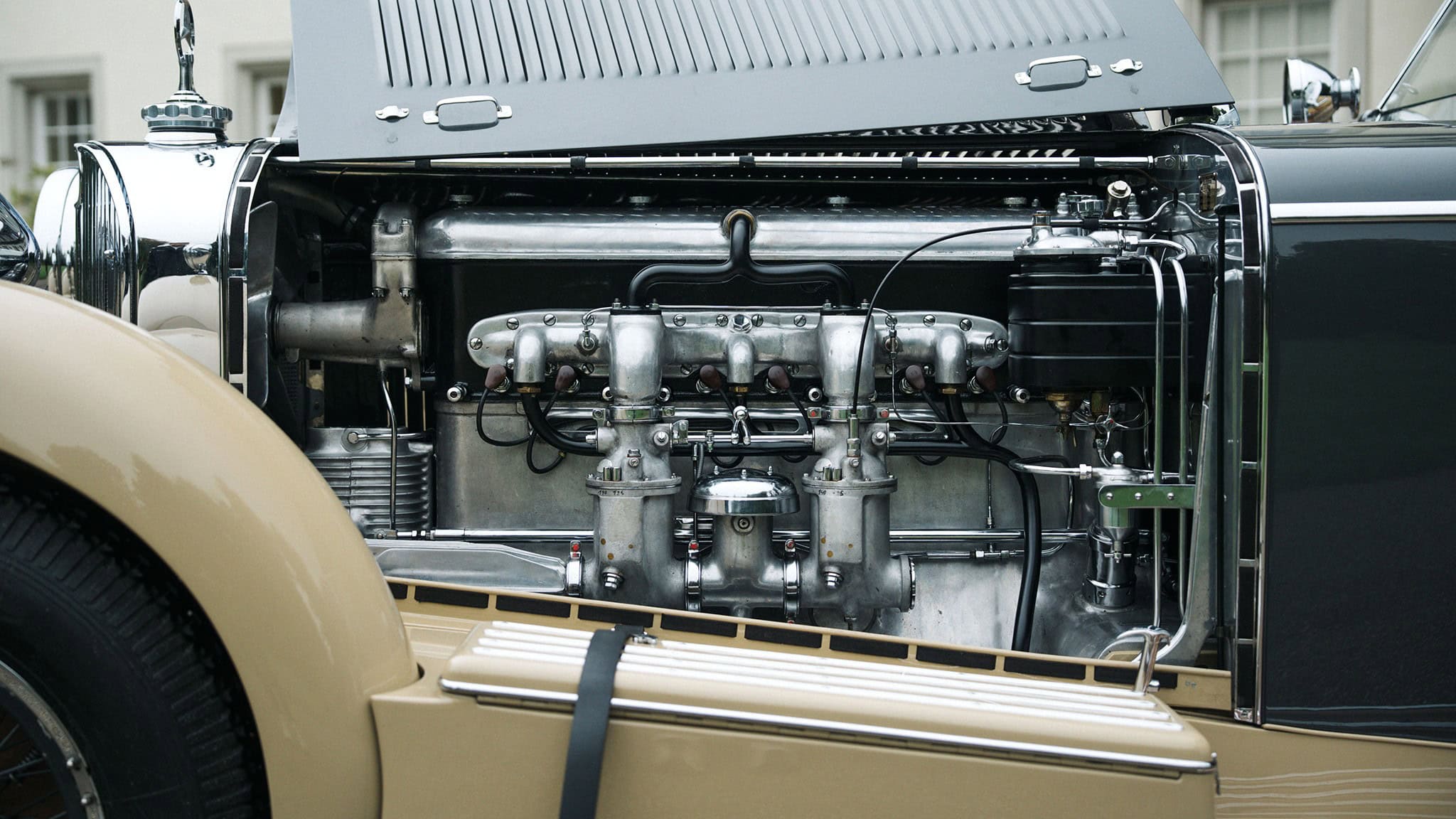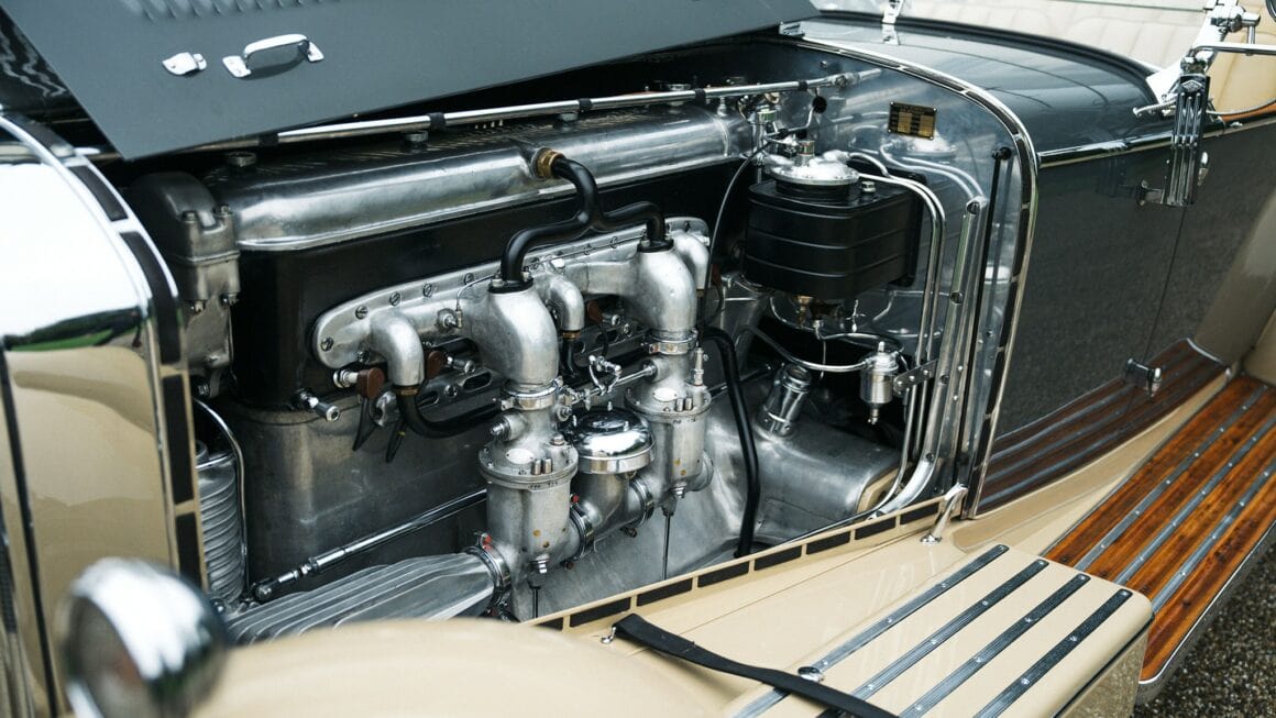 Propulsée par un moteur six cylindres en ligne suralimenté de 6L7 qui développait 140cv en mode de fonctionnement normal et 180cv lorsque le compresseur monté verticalement à l’avant du moteur était engagé. La “S” a été remplacée au milieu de l’année 1928 par la “SS”, qui comportait une version de 7L1 du six cylindres en ligne qui produisait 200cv, le compresseur soufflant le mélange carburant/air dans ses chambres de combustion géantes. C’était deux à trois fois la puissance de la plupart des voitures de route à l’époque, assez pour propulser la Mercedes SS à ce qui était alors une vitesse de pointe surnaturelle de près de 180km/h. La Mercedes SS que je m’apprêtais à conduire avait été construite à peine à 500 mètres d’ici, en 1930, dans l’usine.