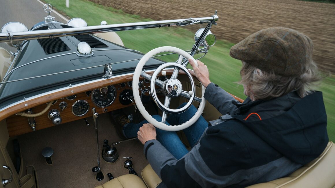 Dans les descentes plus longues, il est prudent d’utiliser également le pied léger sur la pédale pour garder le contrôle de la grosse Benz. Heureusement, le gros six cylindres en ligne a une tonne de couple, ce qui réduit le besoin de changements de vitesse fréquents. La Mercedes ex-Maharaja est une voiture beaucoup plus facile à manier que la Mercedes Simplex de 1904 que j’ai conduite lors du rallye de voitures vétérans de Londres à Brighton en 2023, mais elle n’est pas aussi moderne qu’une Mercedes Roadster 500 K que j’ai brièvement goûtée à Pebble Beach il y a quelques années, notamment parce que cette voiture, construite seulement quatre ans plus tard, en 1934, était plus petite, de plus en plus basse et plus légère et avait les pédales dans le bon ordre.