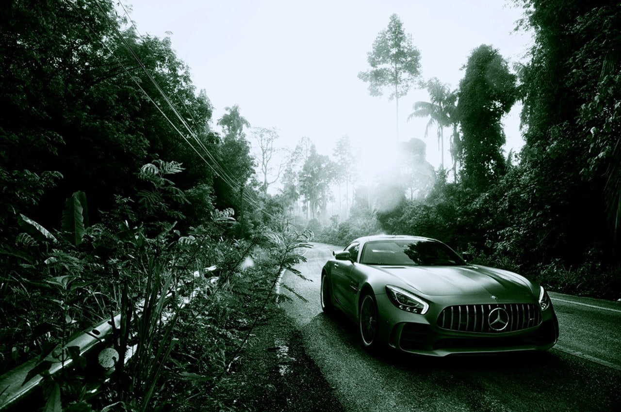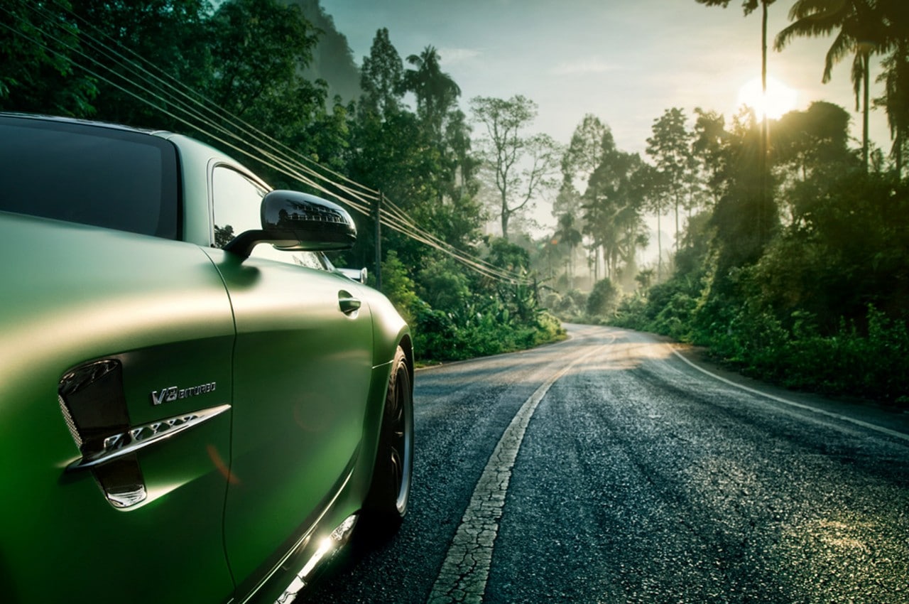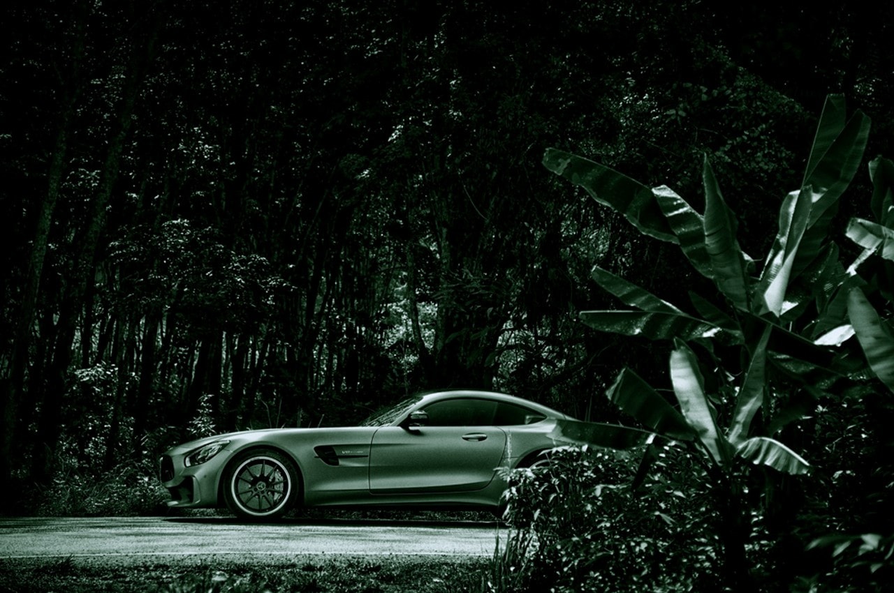 Là, sur le pavé humidifié de bruine, dégoulinaient les lignes verdâches d’une Mercos AMG GTR, une monstruosité esthétisante qui par sa couleur semblait avoir le gout d’un gâteau d’épinards à la crème.