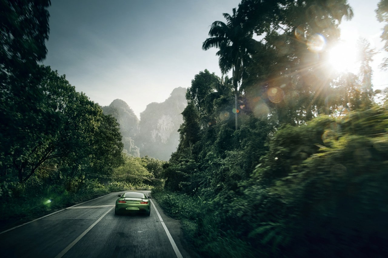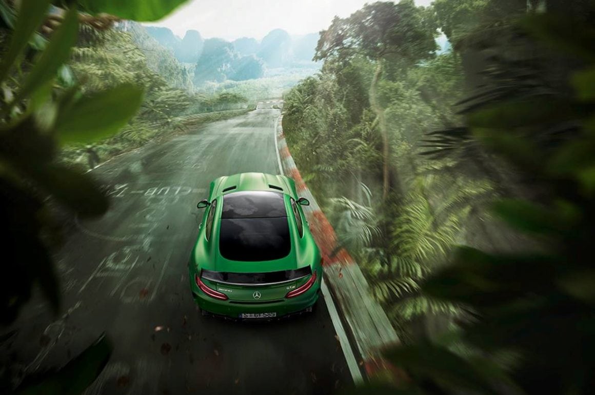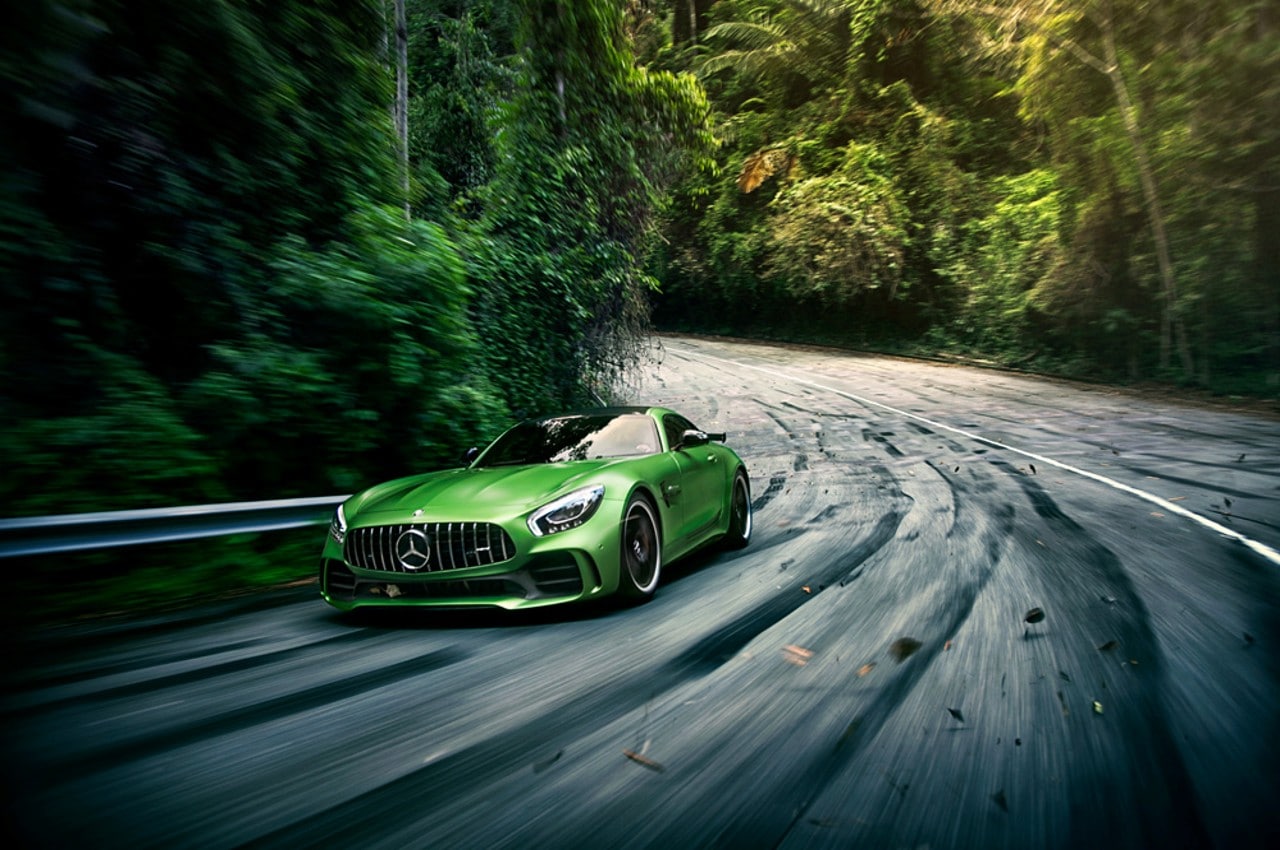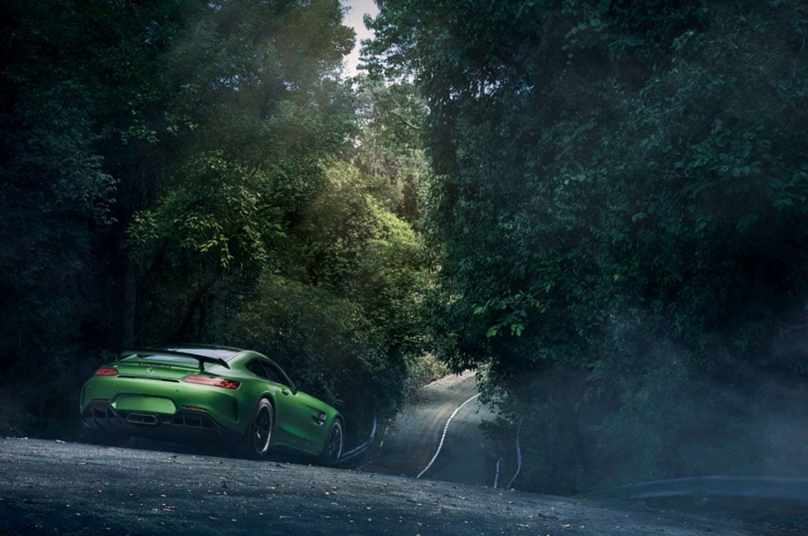 Là, sur le pavé humidifié de bruine, dégoulinaient les lignes verdâches d’une Mercos AMG GTR, une monstruosité esthétisante qui par sa couleur semblait avoir le gout d’un gâteau d’épinards à la crème.