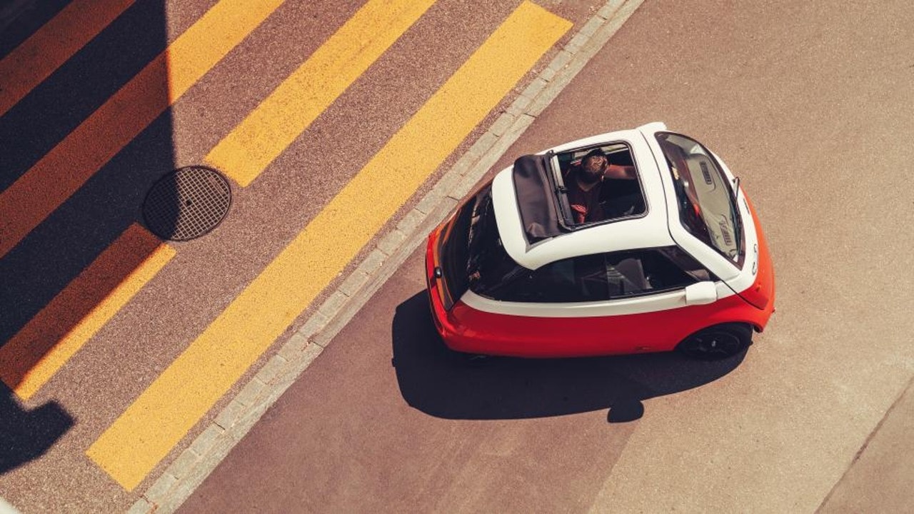 Les couleurs y sont tendances et on est assis plus moelleux et plus confortable que dans la Citroën Ami, même si le maximum de deux occupants sur l’unique banquette est assez proche. Mais la conduire en ville fait une différence. La Microlino accélère assez rapidement et linéairement, ce qui lui manque en vitesse, elle le compense par son agilité. Aucun coin de rue n’est trop serré et aucune place de stationnement n’est trop petite. Si les fenêtres coulissantes et la grande trappe dans le toit sont ouvertes, il y a même une sensation de qualité de vie qui intervient, même dans la circulation.