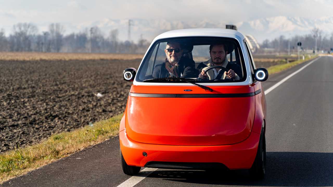 Les rétroviseurs invisibles sont inutiles, la ceinture de sécurité garrotte le cou et la cartographie a été affinée sur le vieux Windows’95. Poussez l’accélérateur et la Microlino s’éloigne prudemment, manquant totalement du Punch de l’insta-urge auquel nous sommes habitués dans les véhicules électriques légers. Il tourbillonne régulièrement à environ 10km/h, mais si le pied est toujours planté, le codage du Windows’95 finit par se réveiller, sentant l’urgence et déverse d’un choc tout le couple que le moteur de 81 lb-pi vers l’arrière peut invoquer sur l’essieu à deux roues à voie étroite ! C’est dantesquement soft… Puis il zoome, le moteur sifflant joyeusement et faisant glisser les pneus.