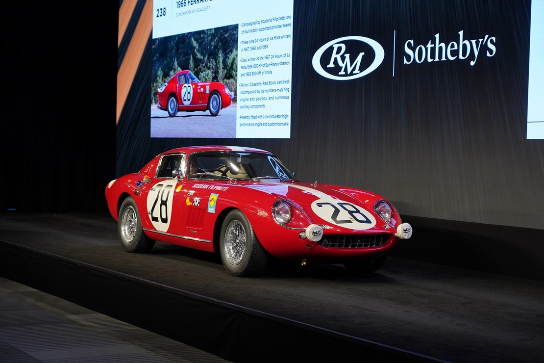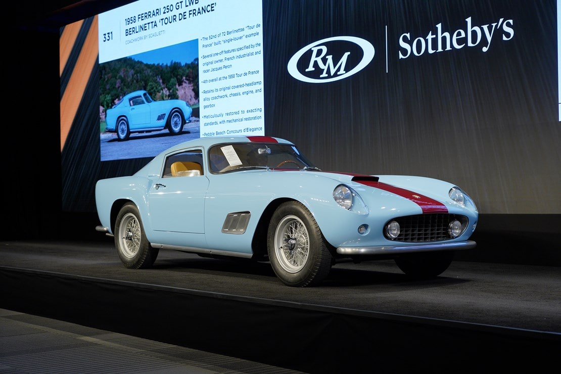 La soirée d’ouverture de la vente aux enchères de trois jours a débuté avec la présentation de la “The Paul Andrews Estate Collection”, un lot de voitures toutes proposées (offertes) presque entièrement sans réserve. Menée par une Aston Martin DB4GT Zagato de 1962, la collection a totalisé 34.439.000 $. L’une des seules 19 DB4GT Zagatos construites a atteint 9.520.000 $. Les deux autres lots pour compléter la sublimation éphémère étaient une Ferrari 268 SP de 1962 par Fantuzzi 7.705.000 $ et une Ferrari 275 GTB Competizione de 1966 curieusement vendue exactement au même prix ! Une Ferrari 250 GT LWB Berlinetta 1958 “Tour de France” par Scaglietti a atteint 6.000.000 $. “The Fox Collection” présentée le troisième jour, rassemblait certaines des supercars et hypercars les plus désirables de l’ère moderne, toutes dotées de spécifications uniques ou rares et c’est une Ferrari Enzo 2003 vedette diabolique d’un article de GatsbyMagazine N°4, l’une des deux voitures livrées dans un coloris Nero-and-Cuoio, qui a été vendue 3.360.000 $.