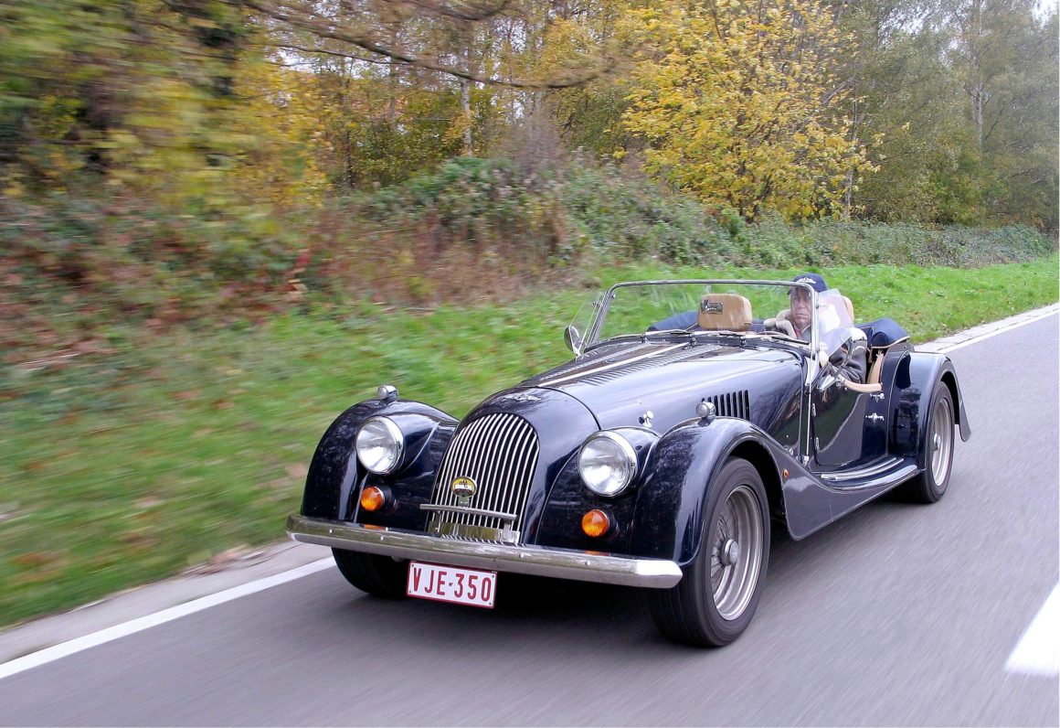 – Patrice, ma Morgan Roadster +6 est une voiture extraordinaire malgré ses défauts qui proviennent de son architecture d’avant-guerre, elle est à son aise jusque 120 km/h sur les petites routes de campagne…, c’est suffisant compte-tenu de mon âge avancé… Première, deuxième au rupteur (6700 RPM), on est à 100 km/h en 5 secondes…