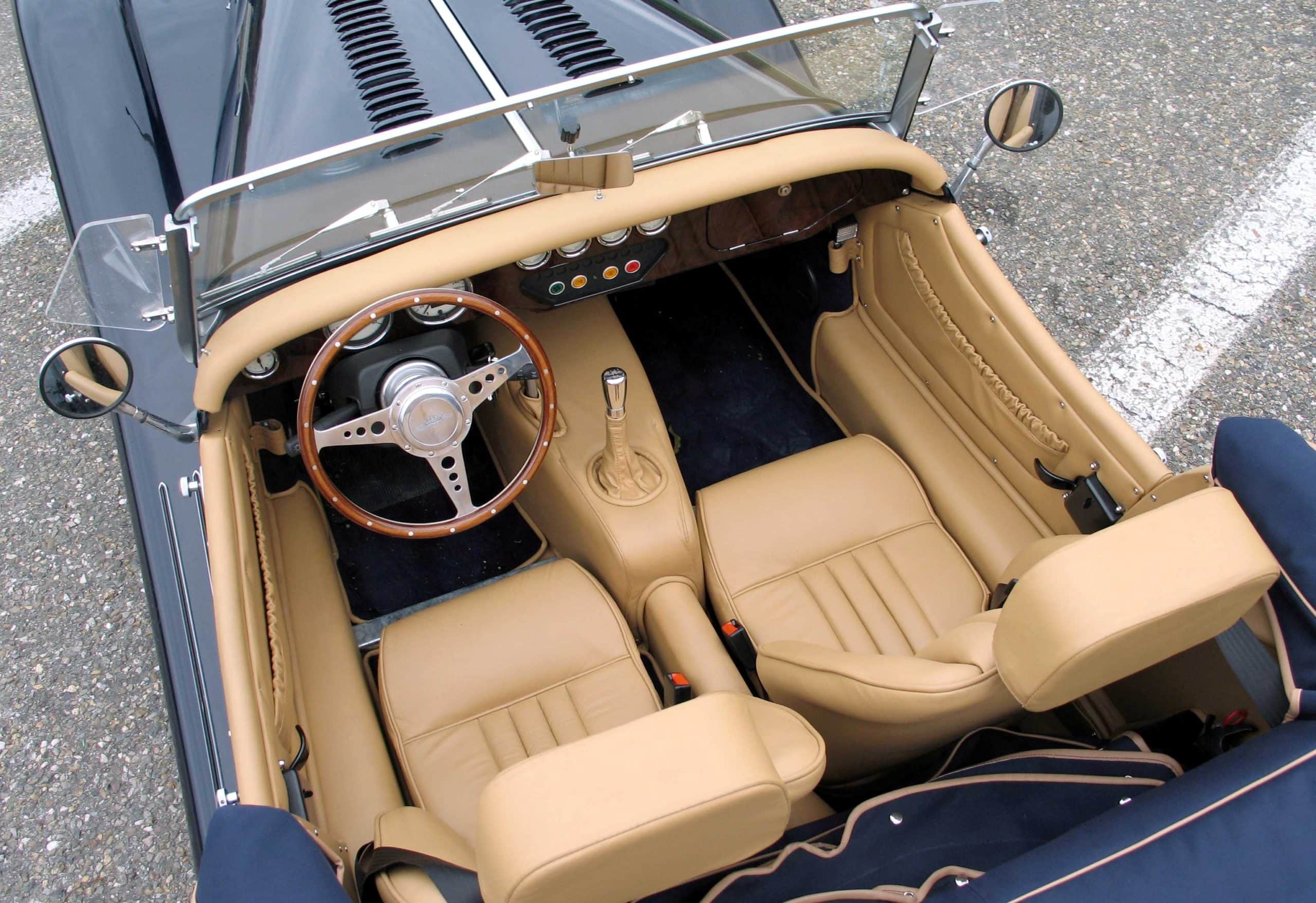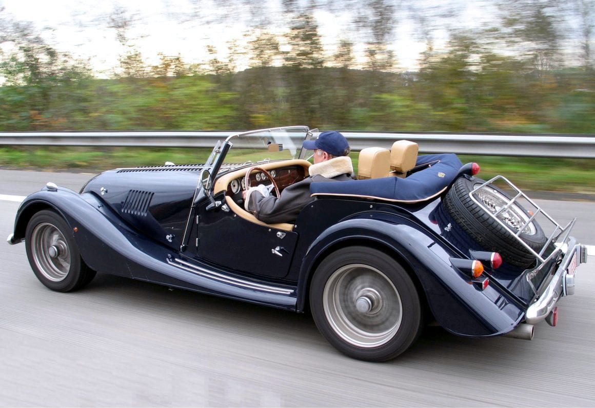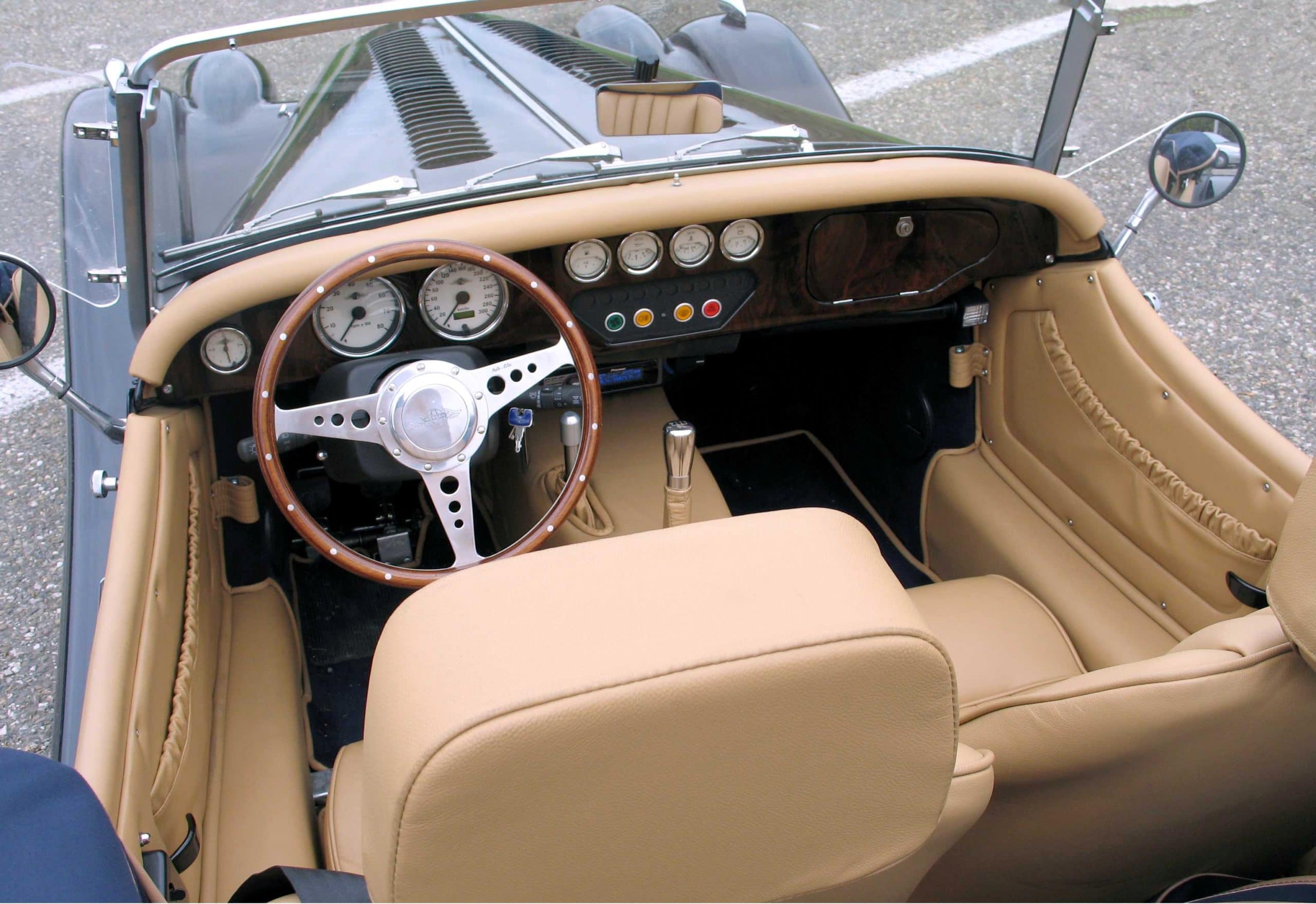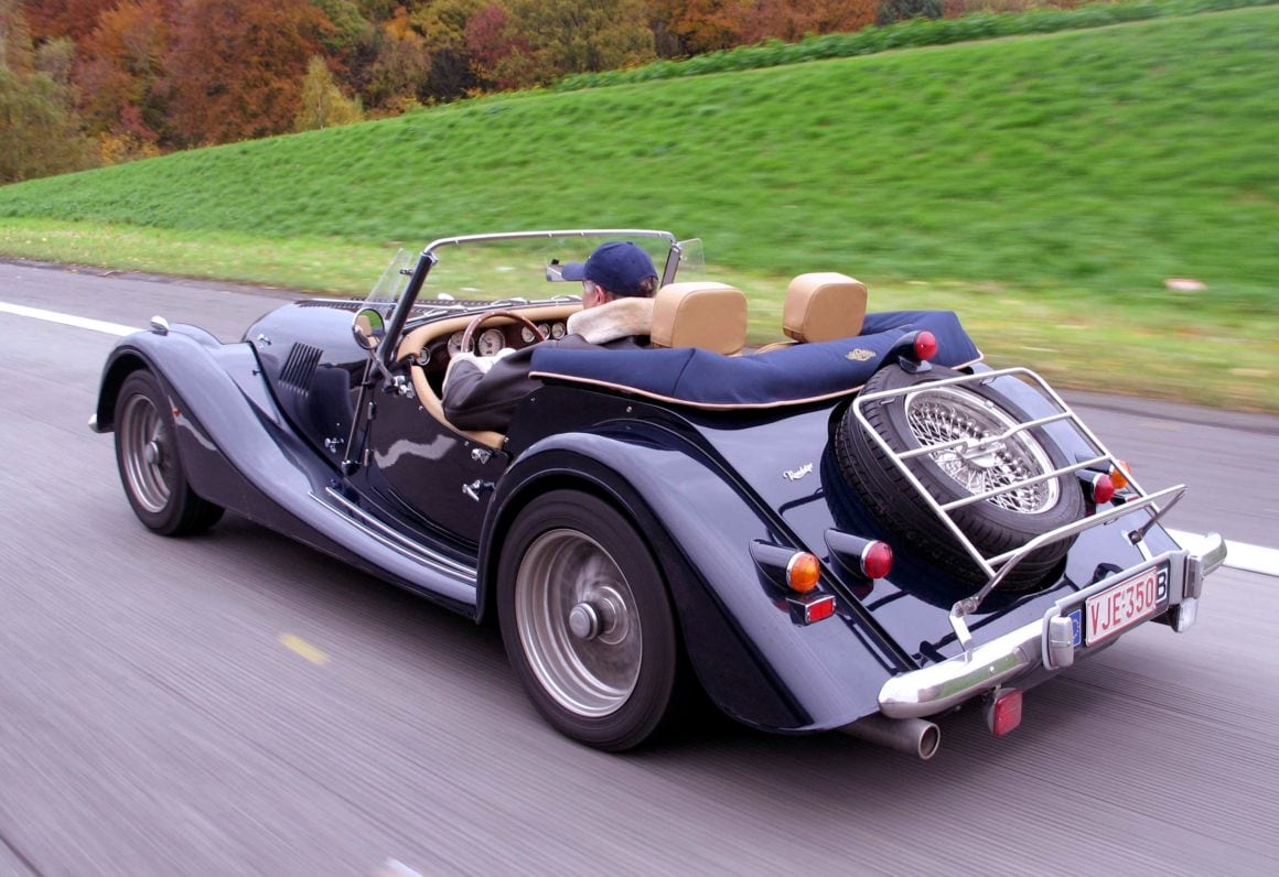 – Par contre, Patrice, j’avoue que l’eau qui s’infiltre partout, inonde plus ou moins rapidement l’intérieur, faisant pateauger mes “church” dans l’eau, mais, à la longue, j’ai fini par m’y faire et j’en rit ! Décapotée, ma Morgan est un plaisir ! En cas de pluie, j’ai toujours une petite peau de chamois à portée de main pour essuyer l’eau qui s’égoutte le long du pare-brise chauffant (une révolution pour la marque), un vrai luxe catalogué comme option…, mais au moins il n’y a plus de buée.