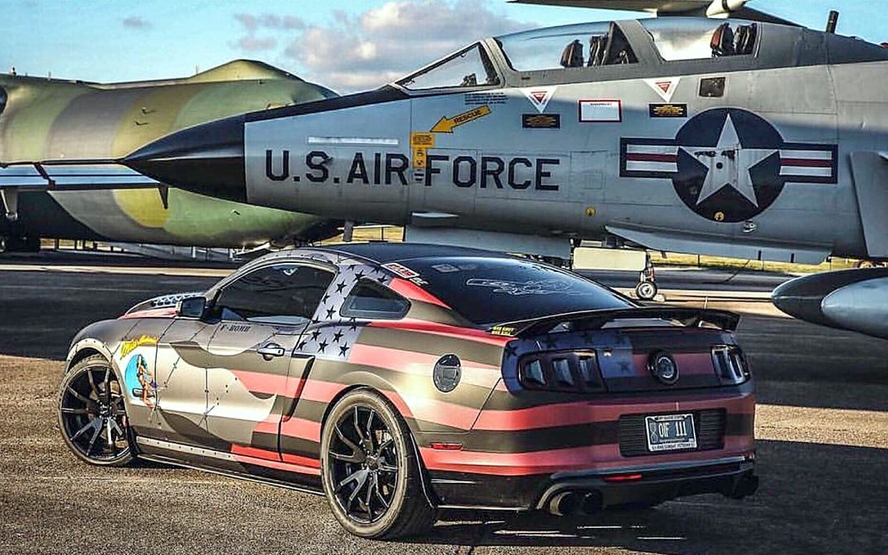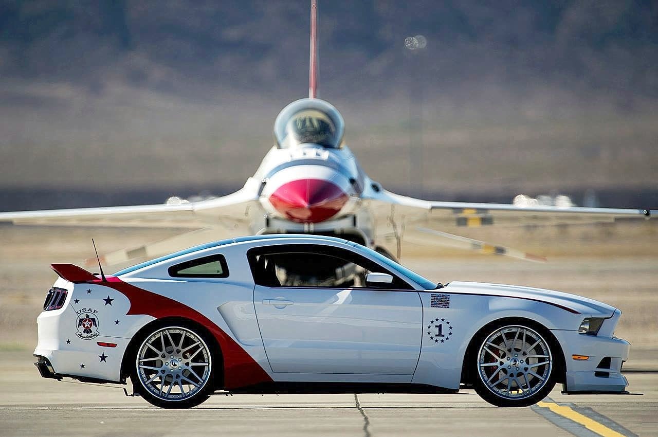 Cette 2014 Ford Mustang GT Air Force Thunderbirds Edition a été modifiée avec des couleurs similaires à celles du F-16 Falcon tandis que les panneaux de carrosserie avant et arrière ont été fabriqués par TS Designs.