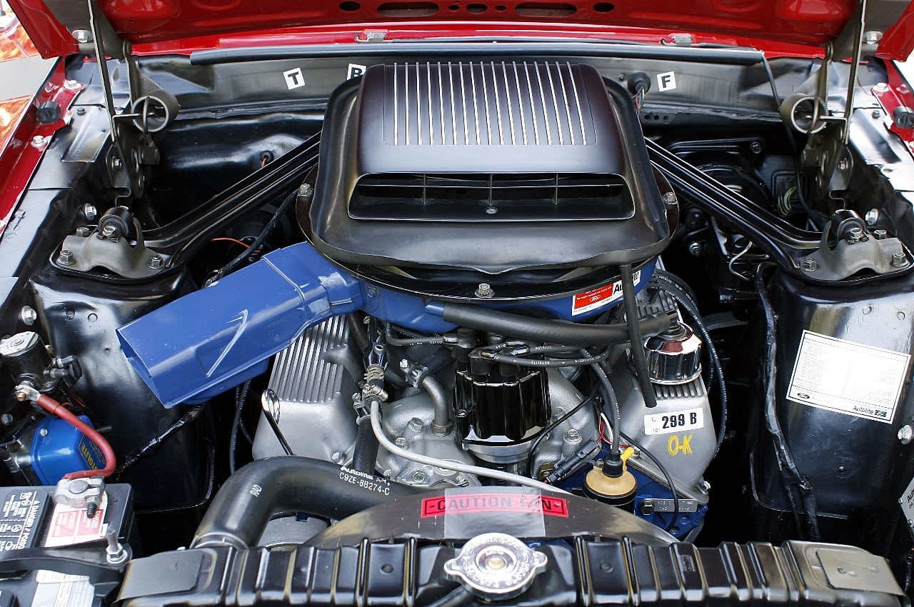 Au début on voulut employer le 302 “Tunnel port“, un bloc bien connu des trans-am, car employé par les Ford de course en 1968, mais ce dernier ne fut jamais produit en nombre assez grand pour lui permettre d’être homologué par la SCCA. Le moteur, lui, fit l’objet de pas mal de recherches. De plus il ne supportait pas trop les régimes élevés et le prix de ses pièces aurait été bien trop élevées pour une production de série. Alors Hank Lenox eu l’idée de prendre de l’existant afin de construire un bloc qui allierait à la fois performance et prix raisonnable.