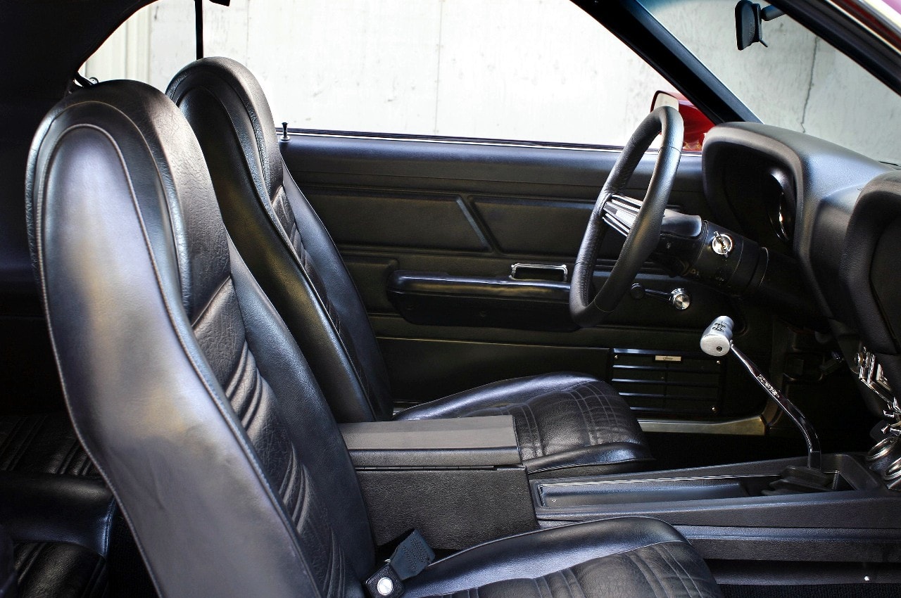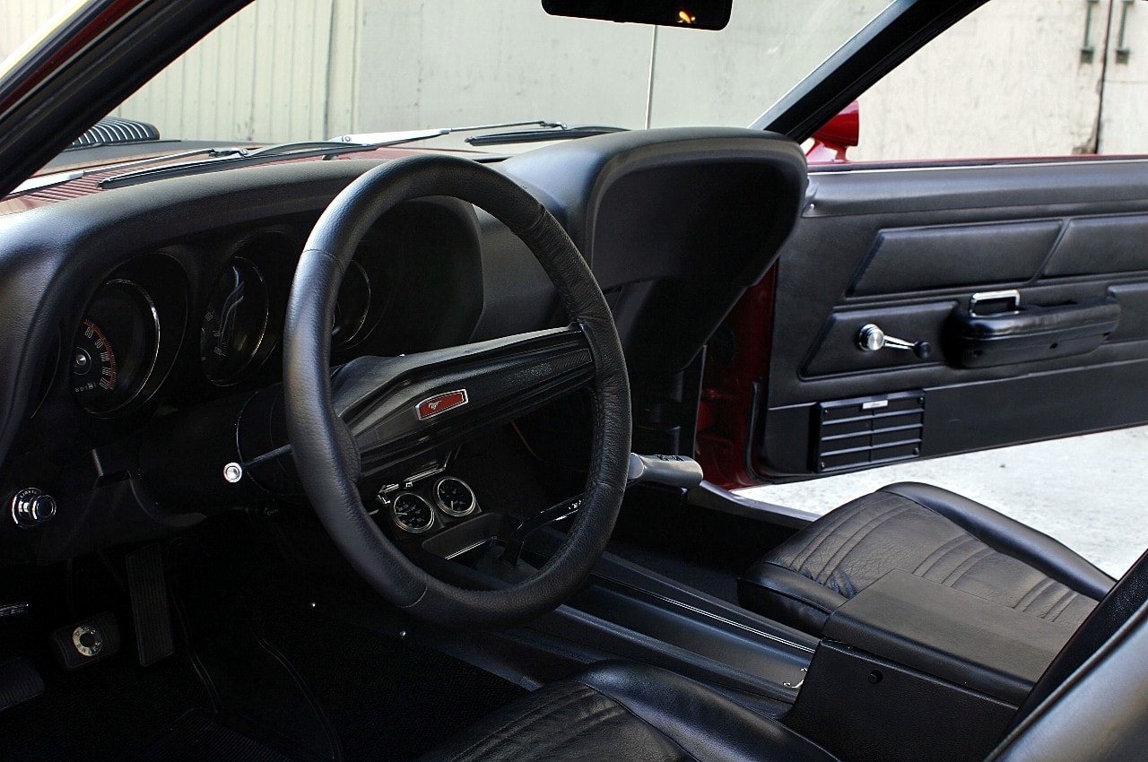 Du côté du confort de conduite, on disposait de freins à disques assistés à l’avant et d’une direction assistée elle aussi, il fallait au moins ça pour épargner ses bras lors des créneaux en ville ! La Boss étant disponible avec une boîte manuelle 4 rapports… et on choisit le superbe levier de vitesse Hurst pour orner l’habitacle. Du côté du compartiment moteur, on bénéficiait du capot Nasa équipé du dual ram induction (prise d’air ram-air) peint en noir mat ou en argent suivant la couleur de la peinture extérieure.