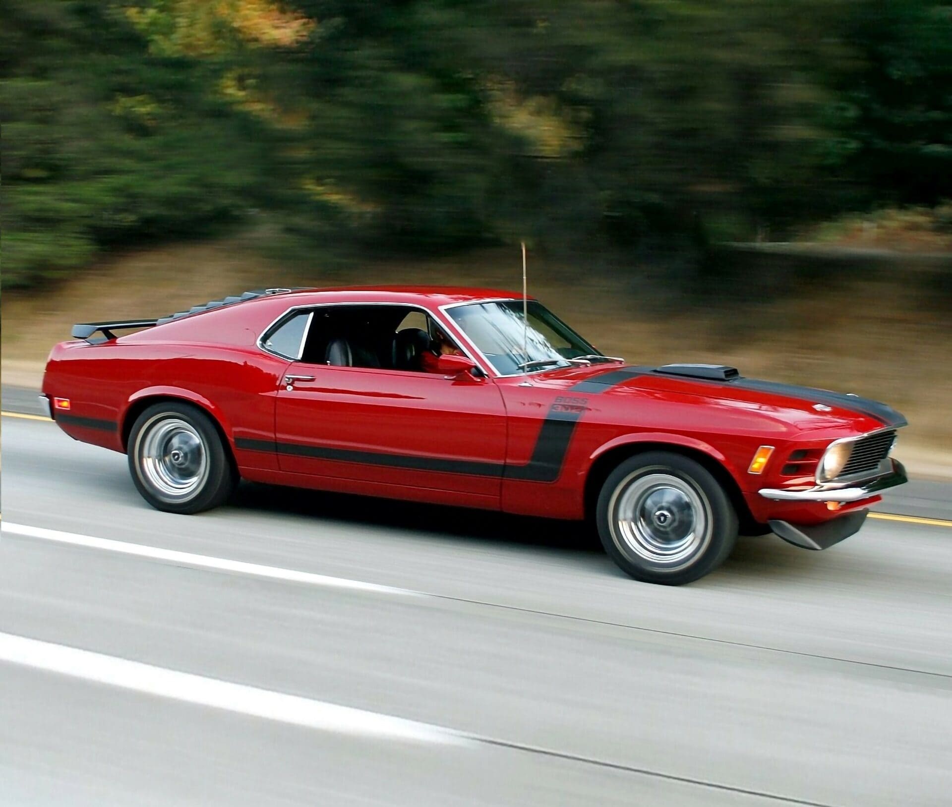 Les seuls changements se constituent d’une prise d’air noir satiné au lieu d’être de la couleur de la carrosserie sur Boss 429 et un nouveau type de moteur 429, le code “A” identique au code “T” mais retravaillé afin de réduire les émissions polluantes ! Peu de changements pour 1970, Ford se contente de poursuivre les deux modèles au sein de la gamme Mustang à nouveau restylée. Rien de nouveau pour ces deux Boss, qui seront produites à un nombre d’exemplaires suffisants afin d’homologuer pour la nouvelle saison les deux moteurs en trans-am.
