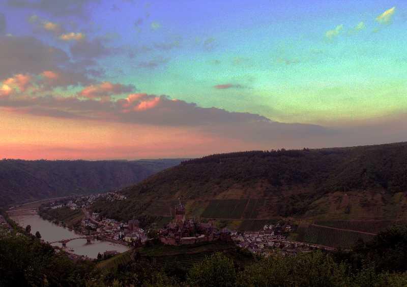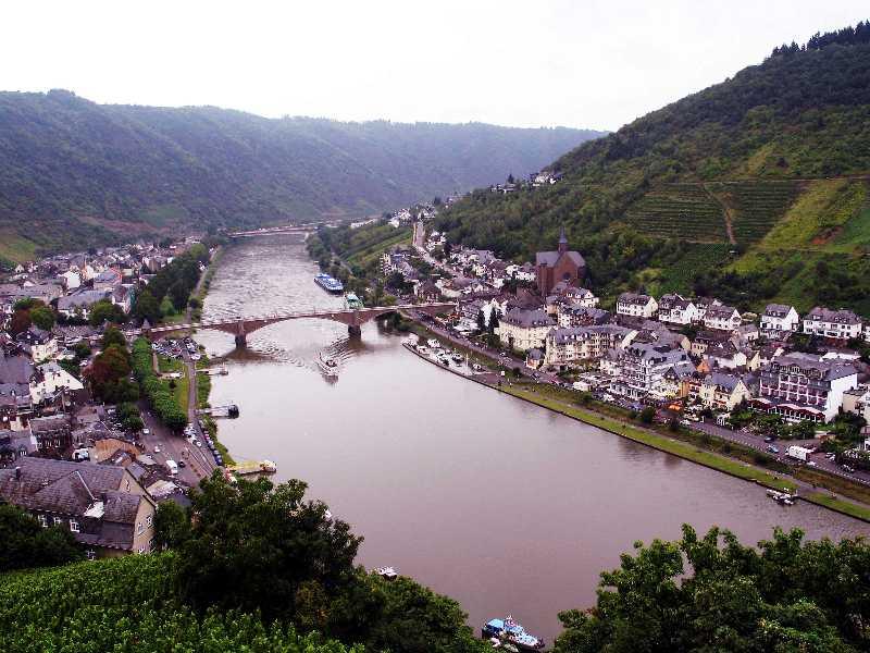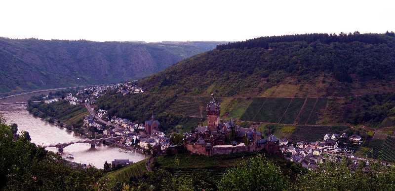 La ville est située dans un site remarquable, caractérisé par un château qui couronne une butte plantée de vignes au bord de la Moselle… Cochem est la capitale et la plus grande ville de l’arrondissement (Landkreis) de Cochem-Zell du Land de Rhénanie-Palatinat, en Allemagne… c’est une étape très fréquentée dans la vallée de la Moselle et un centre viticole important du terroir Moselle-Sarre-Ruwer.