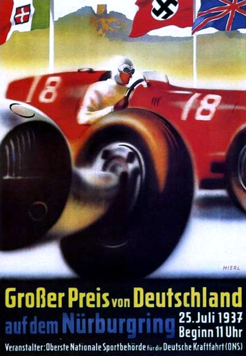 Le Grand Prix d’Allemagne, disputé à l’Avus l’année précédente, allait y prendre ses quartiers jusqu’à ce que la seconde guerre mondiale renvoie au garage les autos pour en faire sortir des tanks.