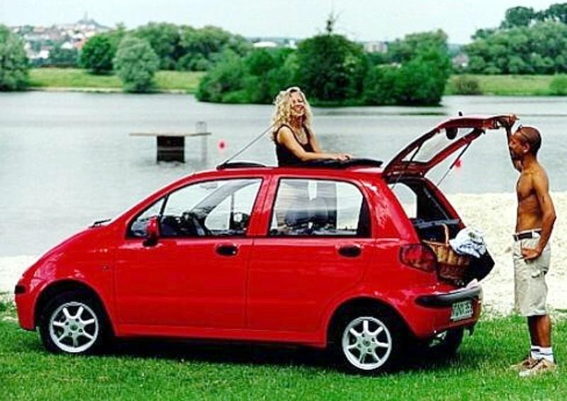 Pour l’anecdote (on a le temps hein…), j’ai un copain qui travaille chez Chevrolet à Strasbourg, il était très embêté (il aurait bien aimé me vendre une Malibu, je le comprends, d’autant que je la prenais en essence, boite automatique, couleur rouge hémorragie avec le cuir crème, un os, un oignon, un truc rigoureusement impossible à fourguer en seconde main !)…, peiné, mon ami m’a proposé, pour beaucoup moins cher, une voiture qui traînait dans sa cour depuis un bout de temps, sous les phares de laquelle se développait un biotope moussu, une petite bagnole à cinq portes trapue haute sur pattes qui ressemblait à une grenouille qui se serait prise un gros coup de pompe dans le cul : une Matiz.