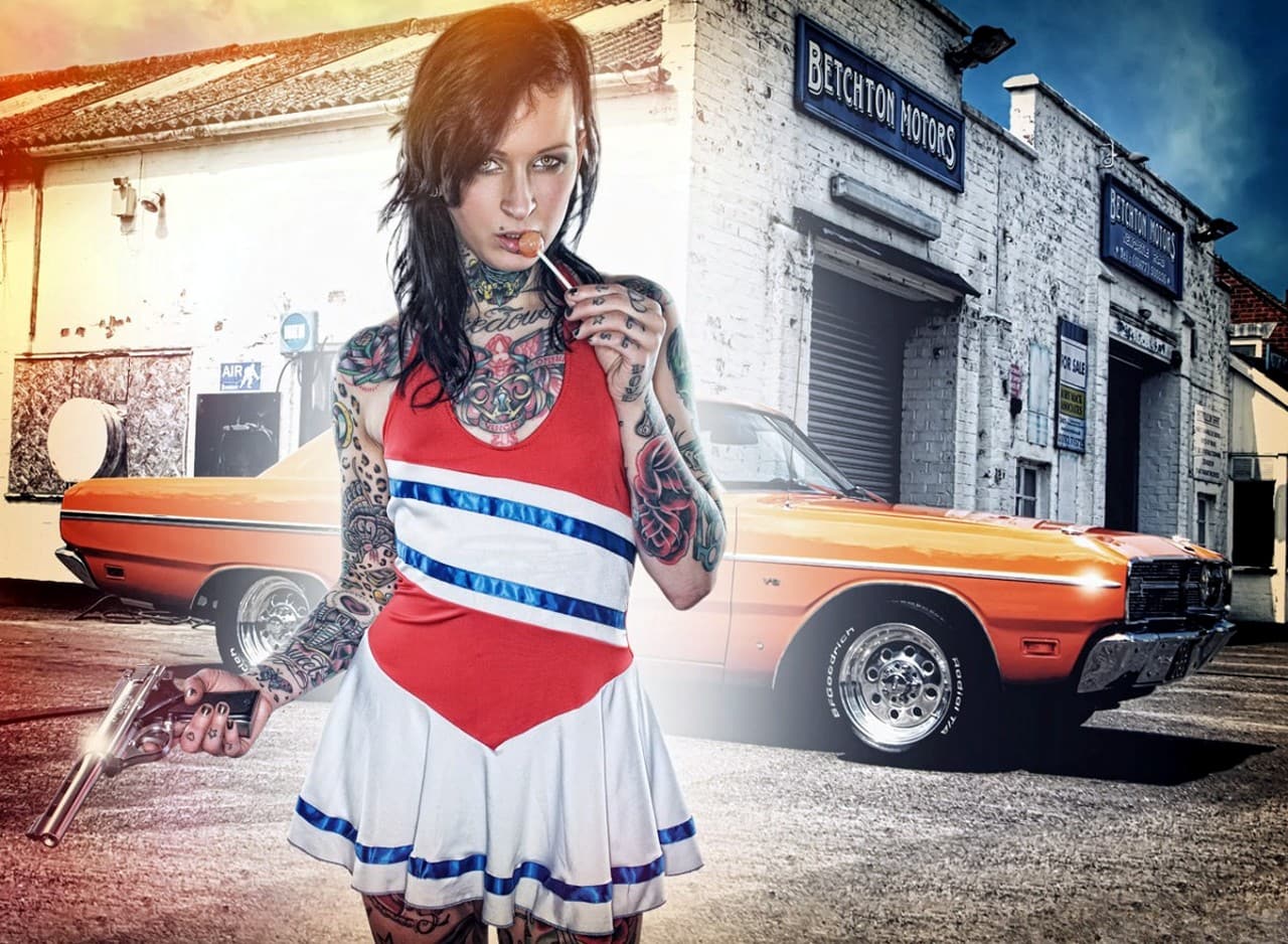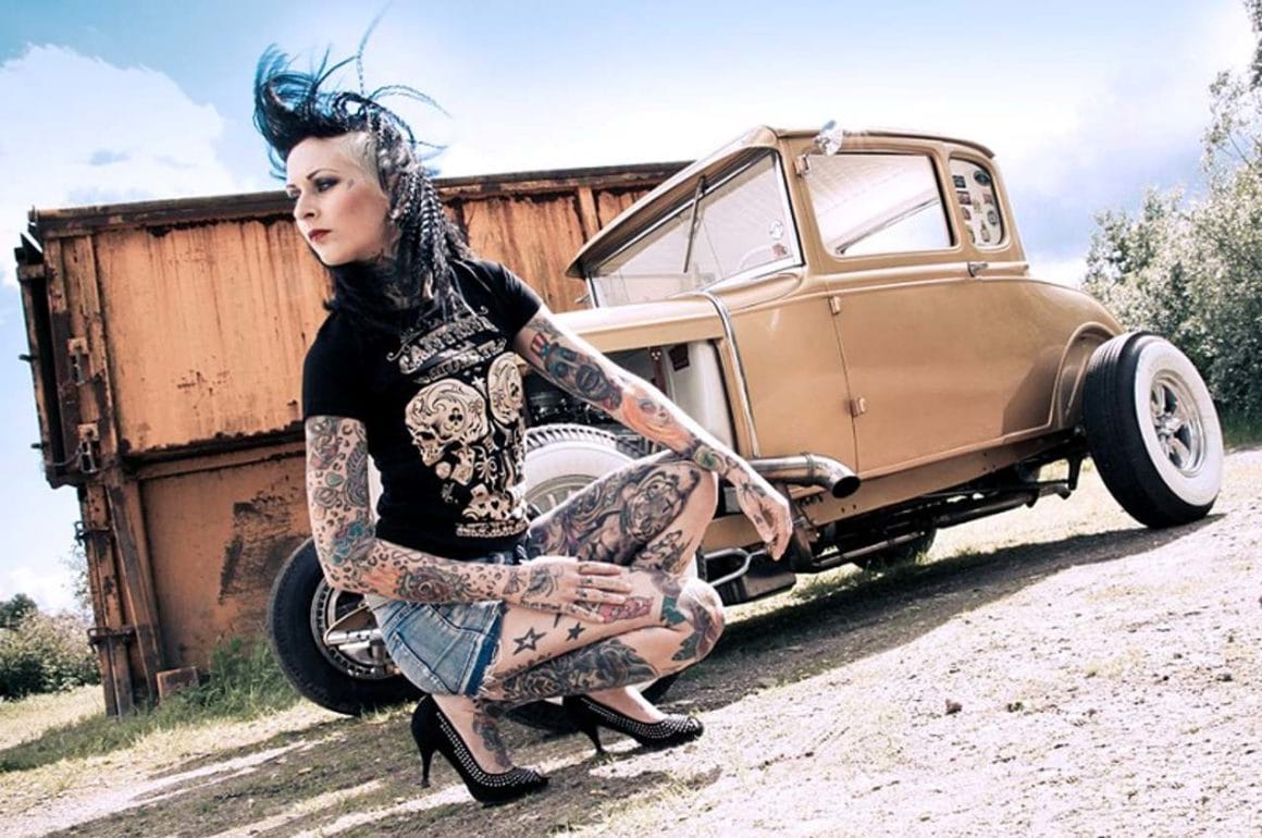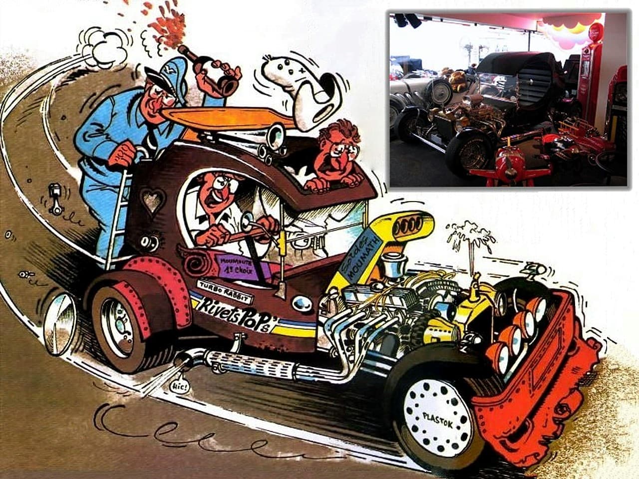 Et maintenant, amis et amies penchons-nous un instant sur la “Kustom-Kulture” et le “Hair-Métal”…, c’est vrai, quoi, on se moque à bon compte de ces post-apocalyptiques machins et des besogneux plus ou moins modestes qui s’y sont investis… et si on s’attaquait davantage aux réalisations prétentieuses et pleines de fric, aspirant à la respectabilité critique comme au succès public…, une catégorie qui a offert une bonne série de réjouissantes catastrophes, surtout dans la catégorie dite du “Kustom-Pudding”, soit ces automobiles boursouflées nourries avec un peu d’argent et qui au final ne satisfont personne…, mais surtout ces nananas (meufs) peinturlurées et tatouées comme les “zozotos” de leurs mecs (beaufs)…