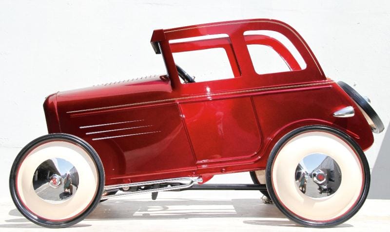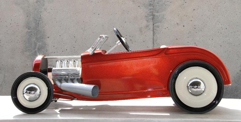 RM-Auction met en vente, à Monterey-Californie, dans le cadre des festivités de Peeble Beach, 3 voitures à pédales réalisées par des grands noms du Hot-Rodding et qui, donc… ont créé ces voiturettes qui vont faire rêver non seulement les adultes amateurs de Hot-Rods, mais aussi leurs enfants… sous l’influence du “dream” permanent de l’Américan way on life.